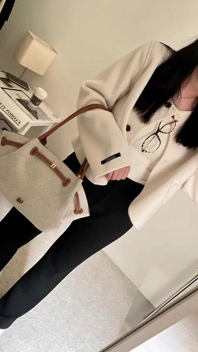 米白色帆布包身搭配皮革滾邊層次設計滿分!