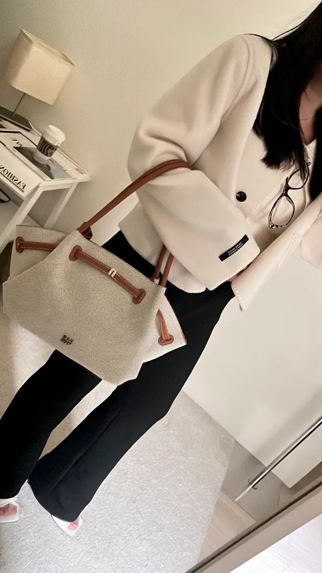 這款托特包細緻帆布+柔軟皮革✨
