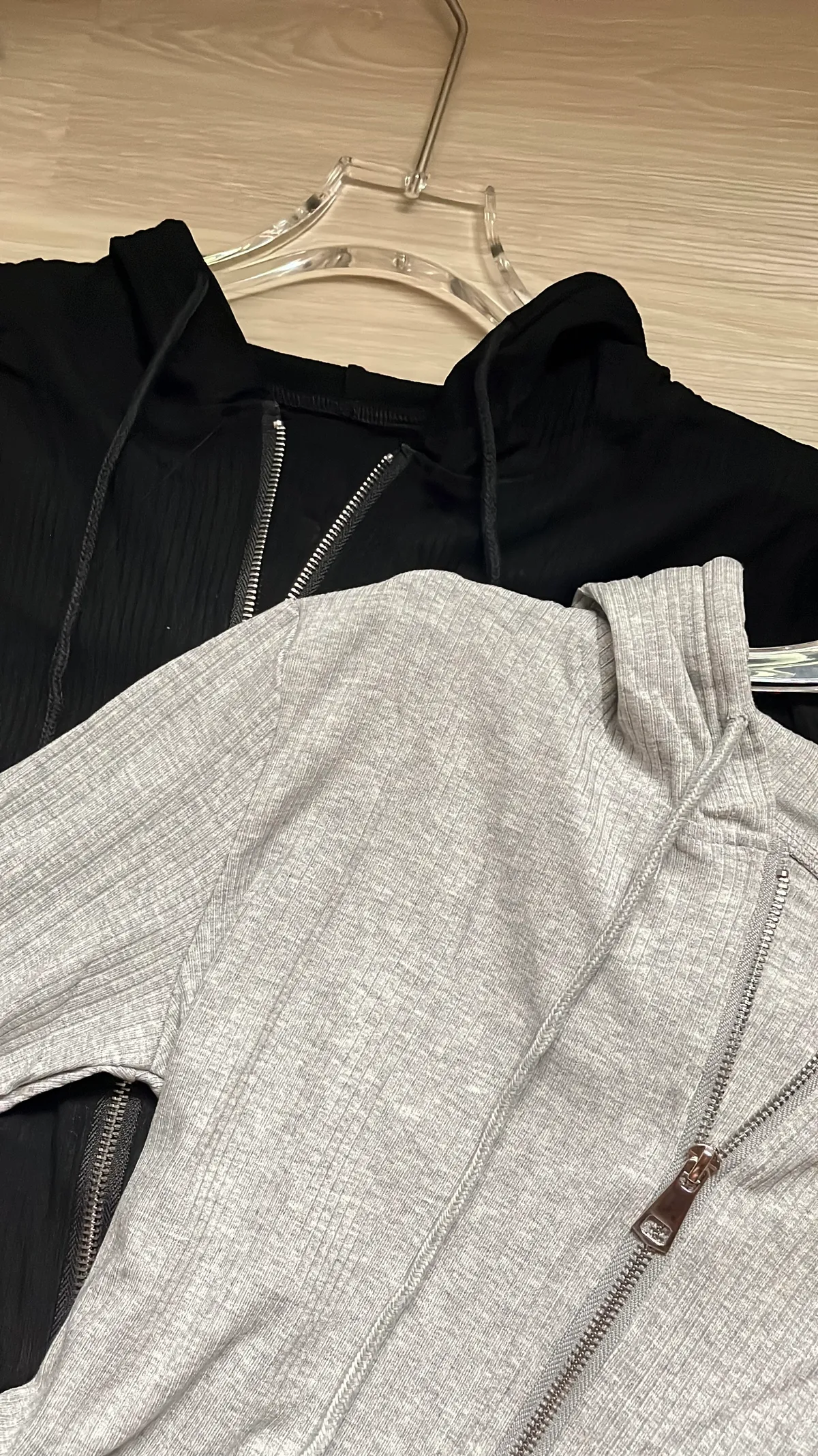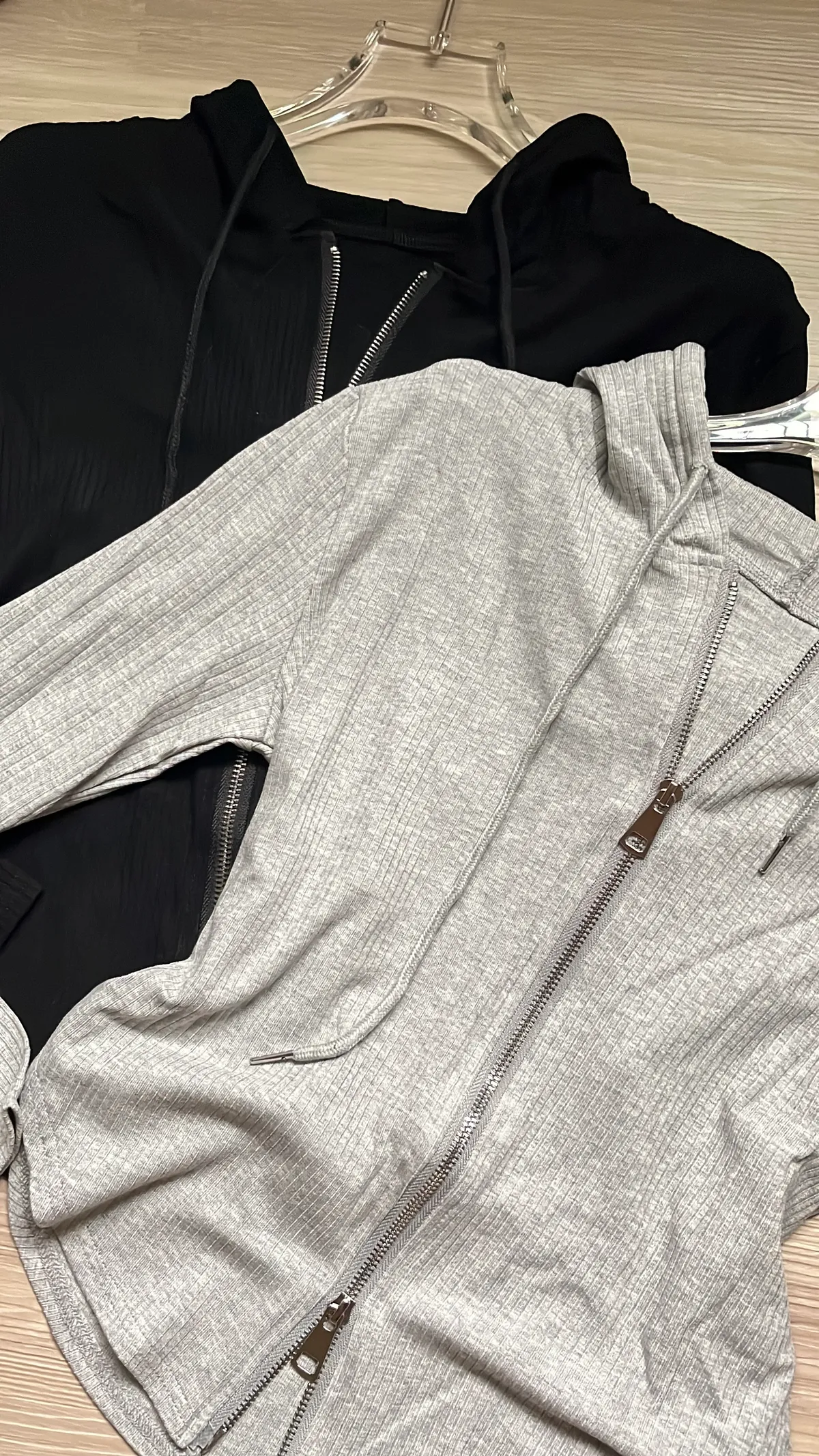修身雙拉鍊連帽彈性坑條外套 ☁️