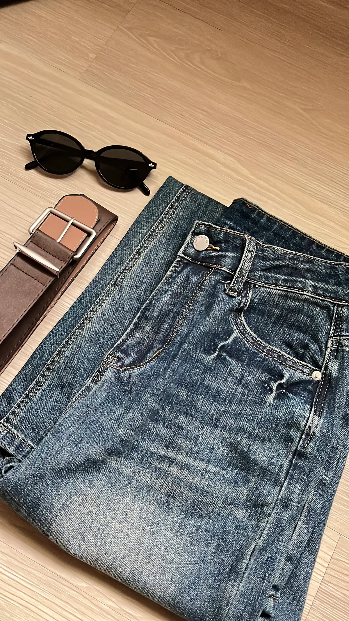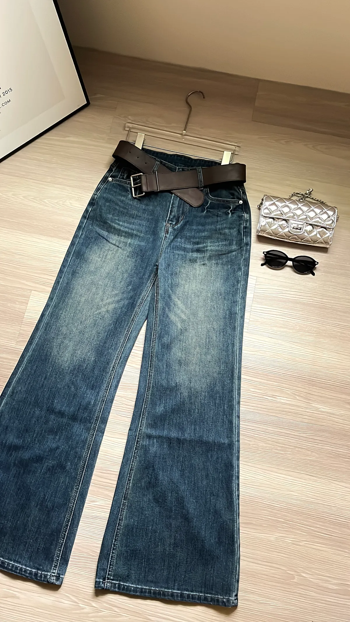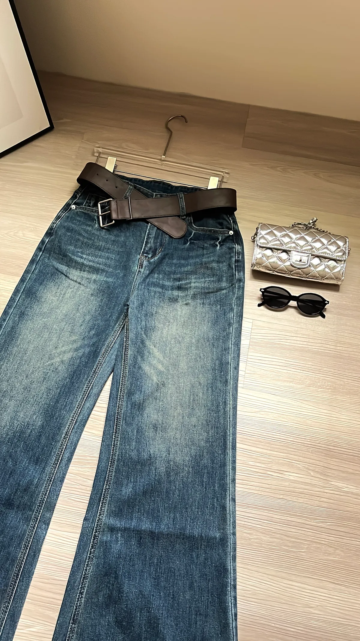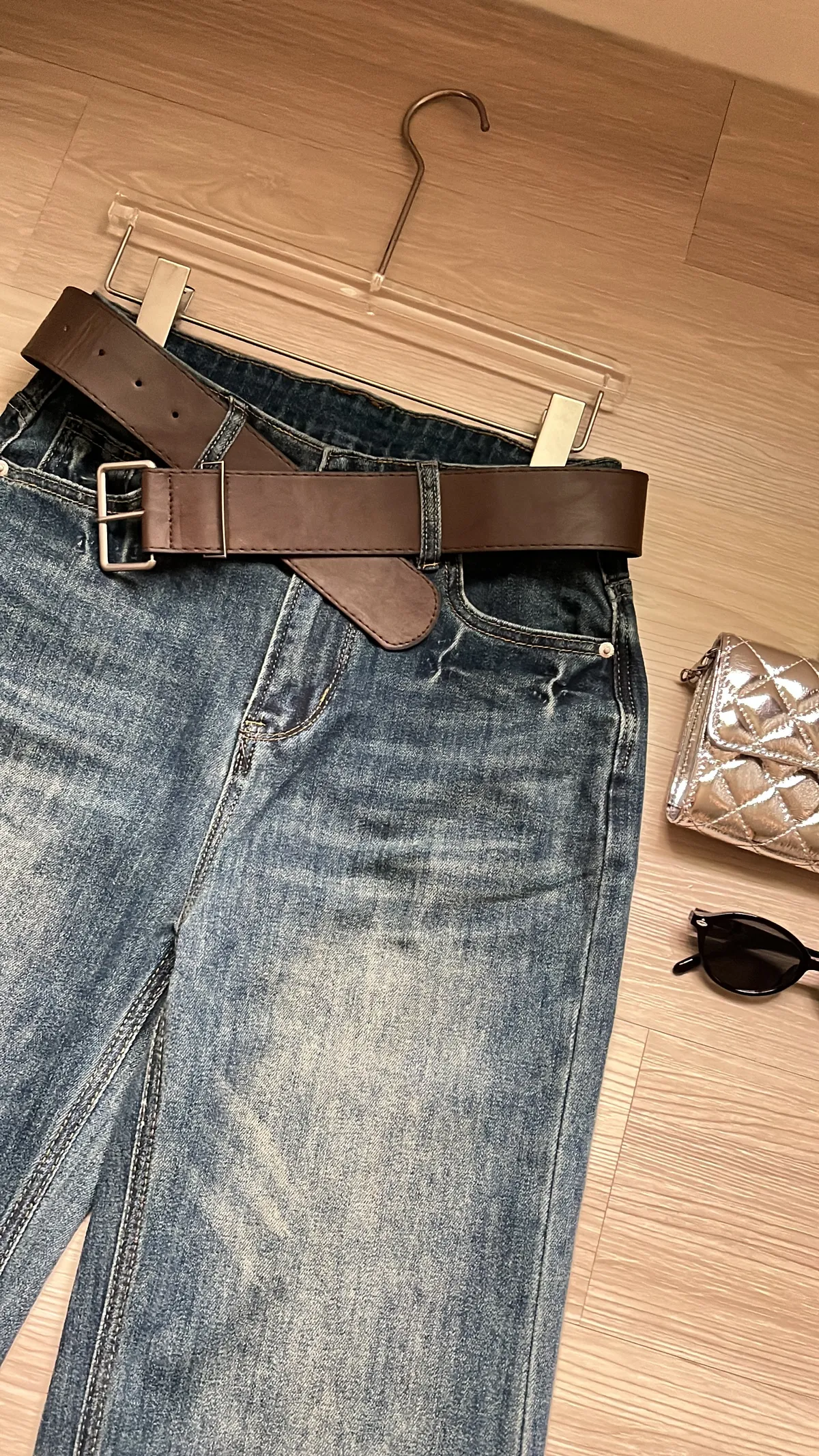 🌟長腿拿捏!高級復古刷色彈力牛仔微喇叭褲+皮帶👖