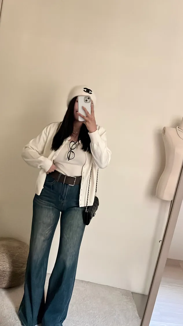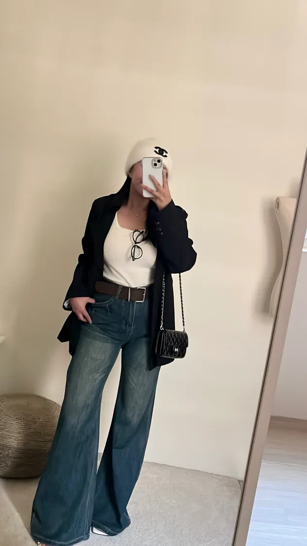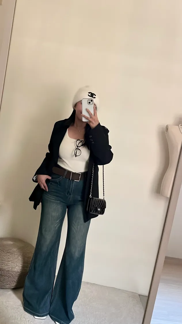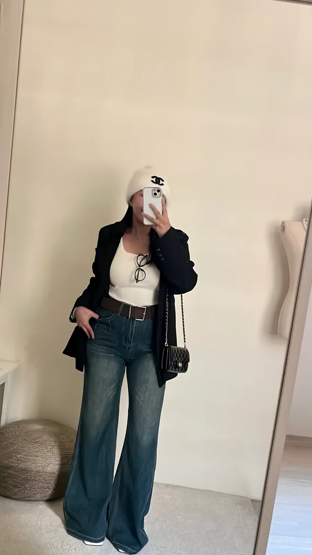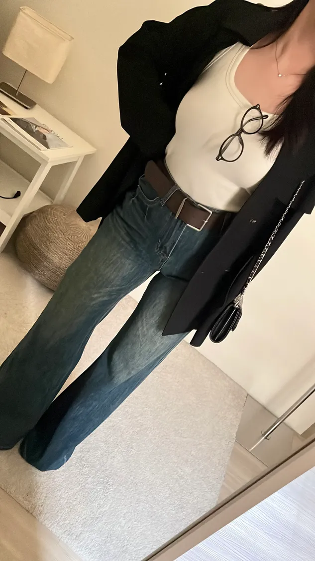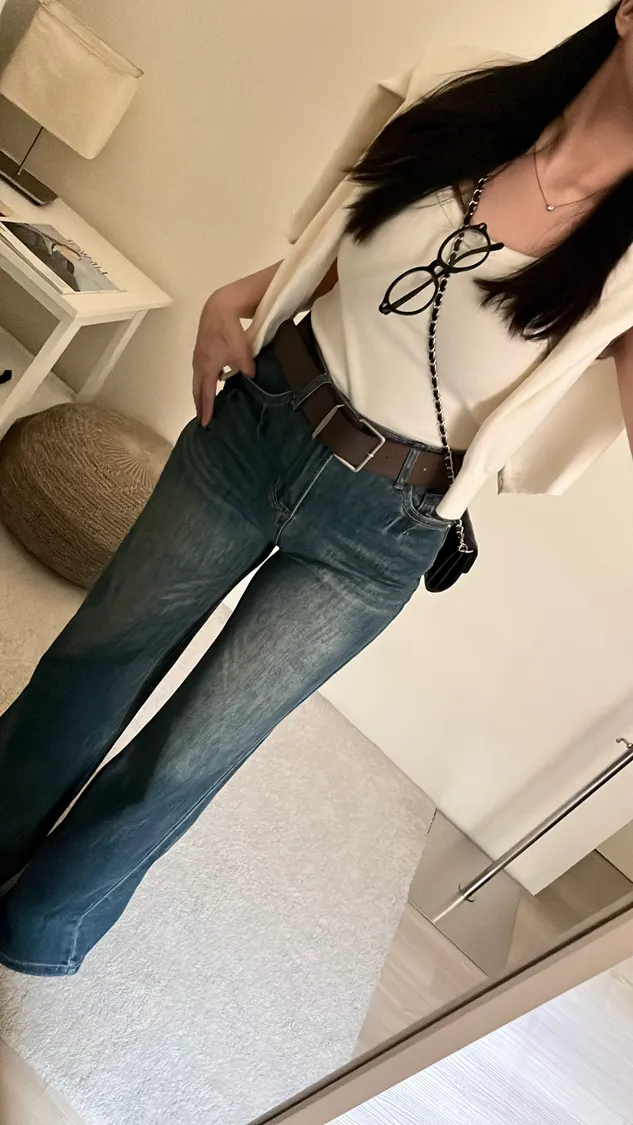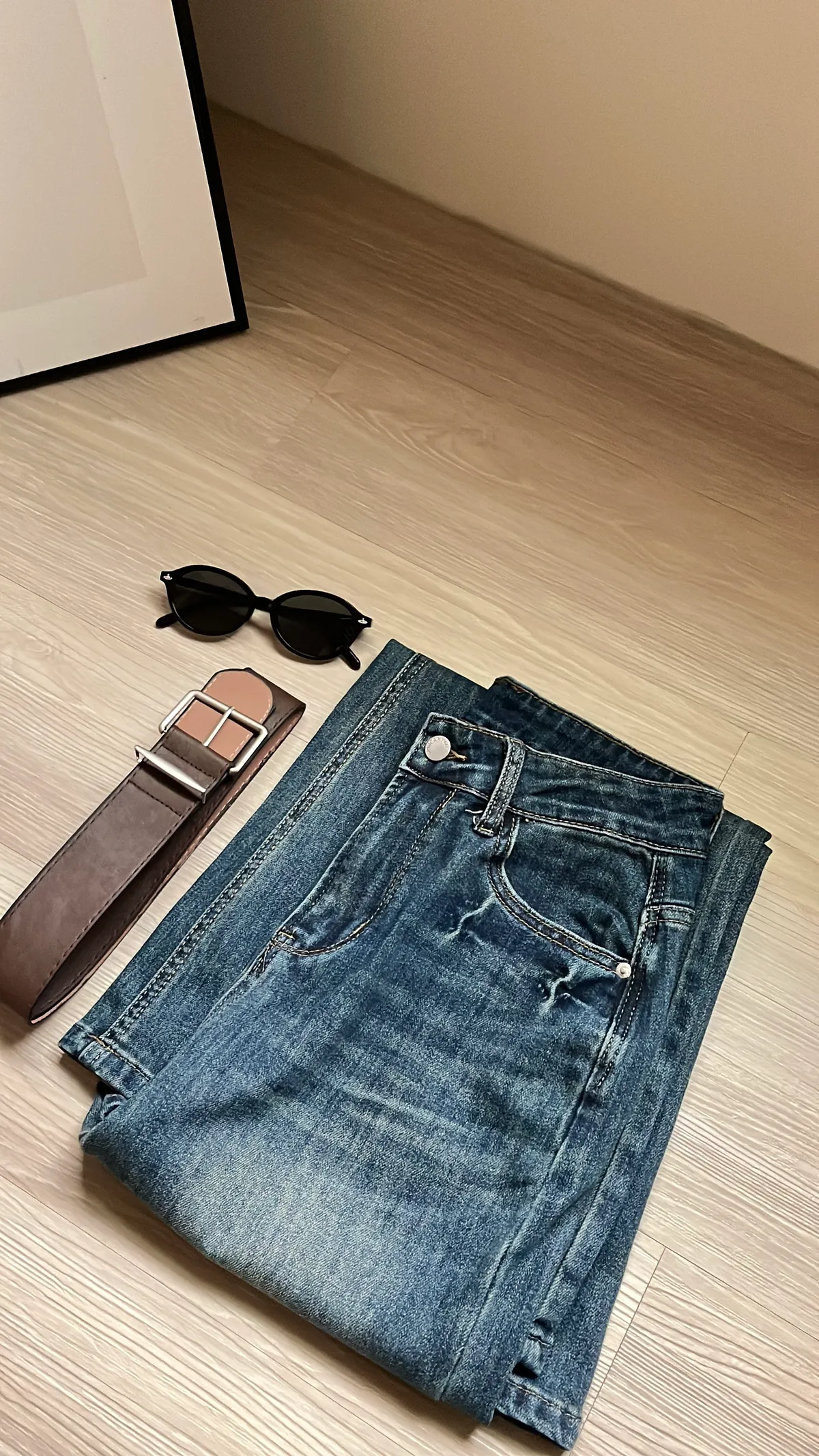 🌟長腿拿捏!高級復古刷色彈力牛仔微喇叭褲+皮帶👖