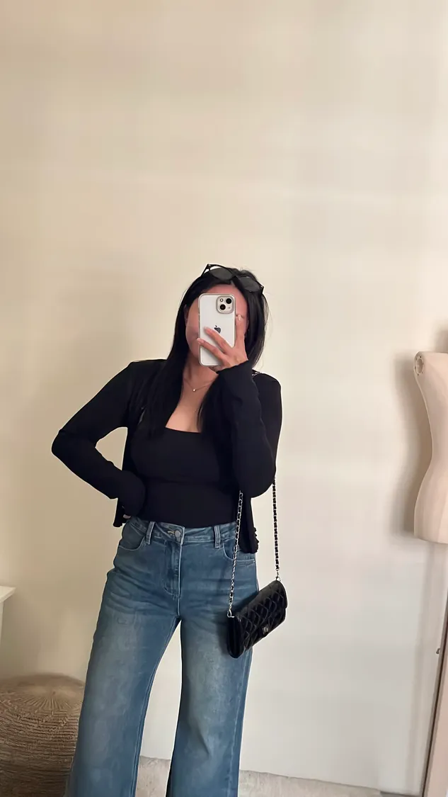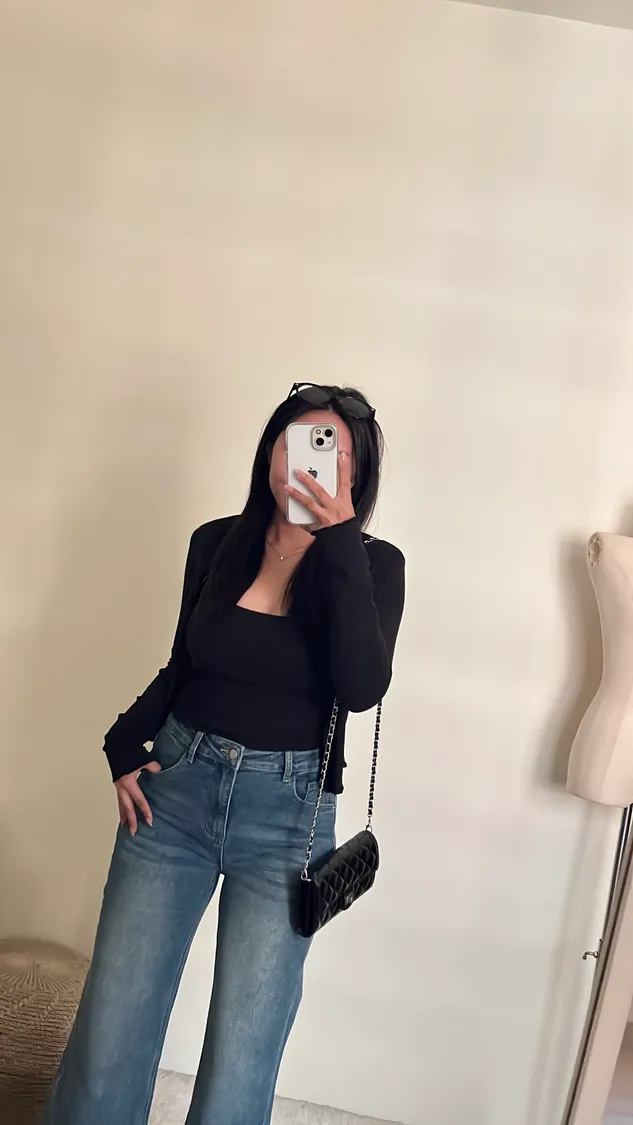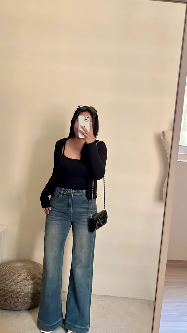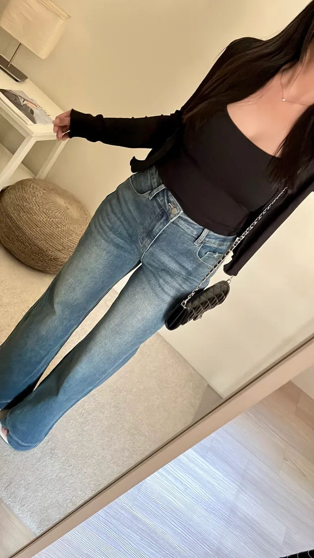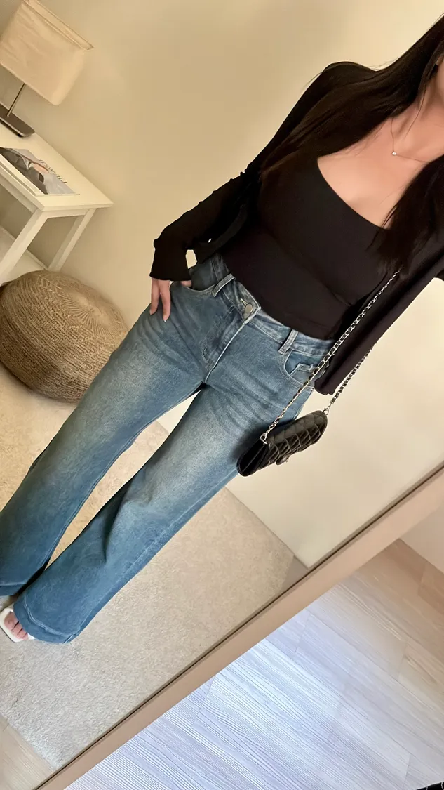 簡約俐落高腰直筒彈力牛仔褲✨