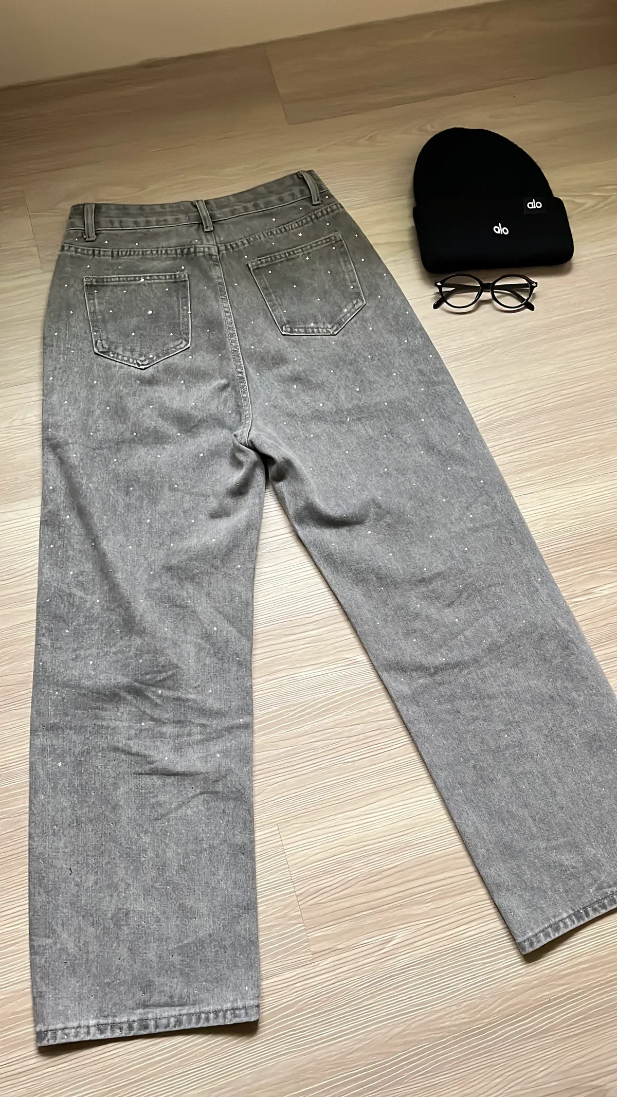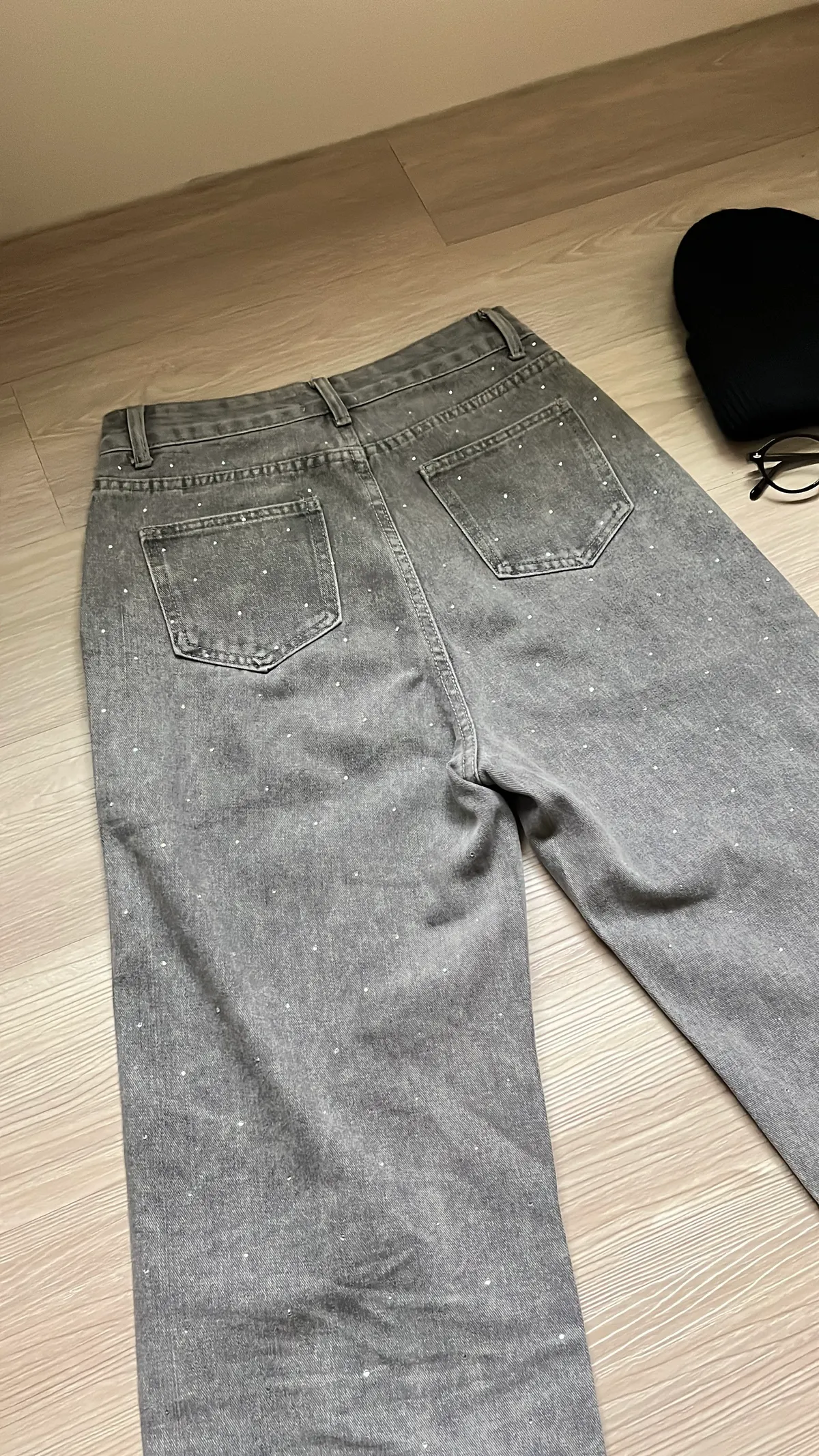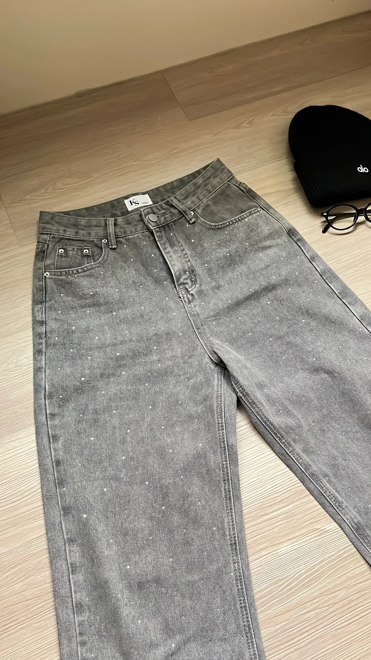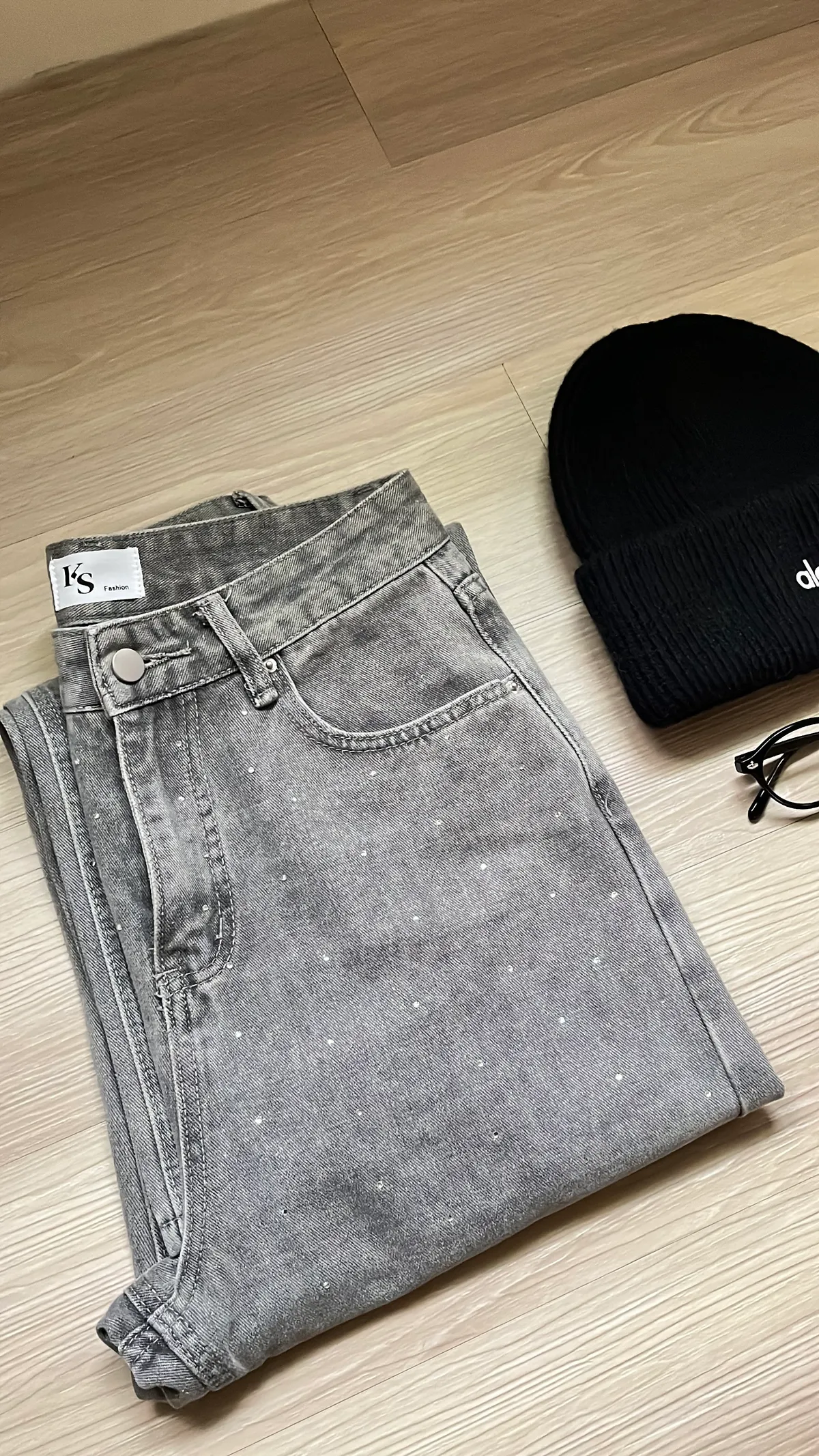 很有質感的水洗霧灰+閃鑽設計,