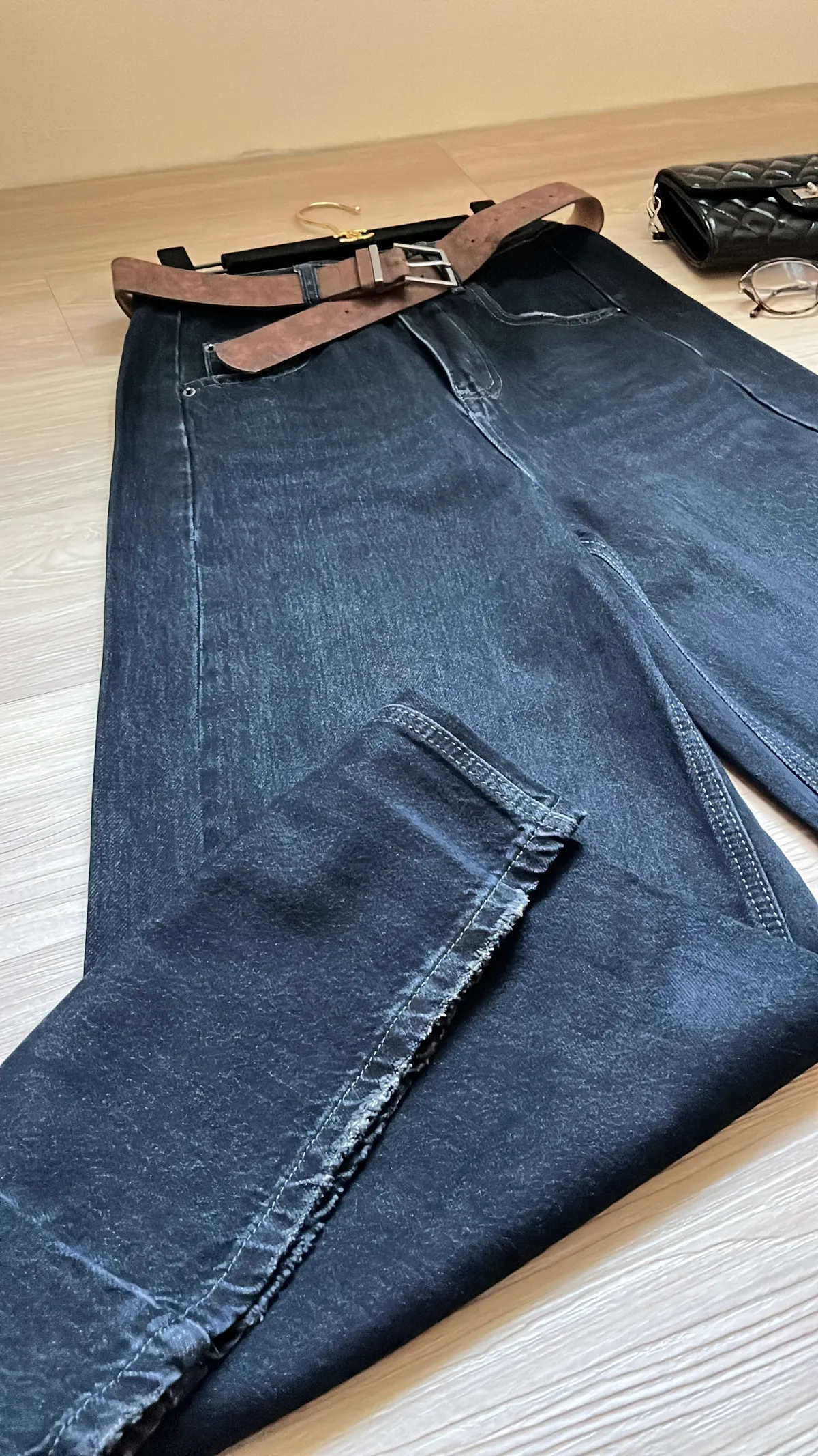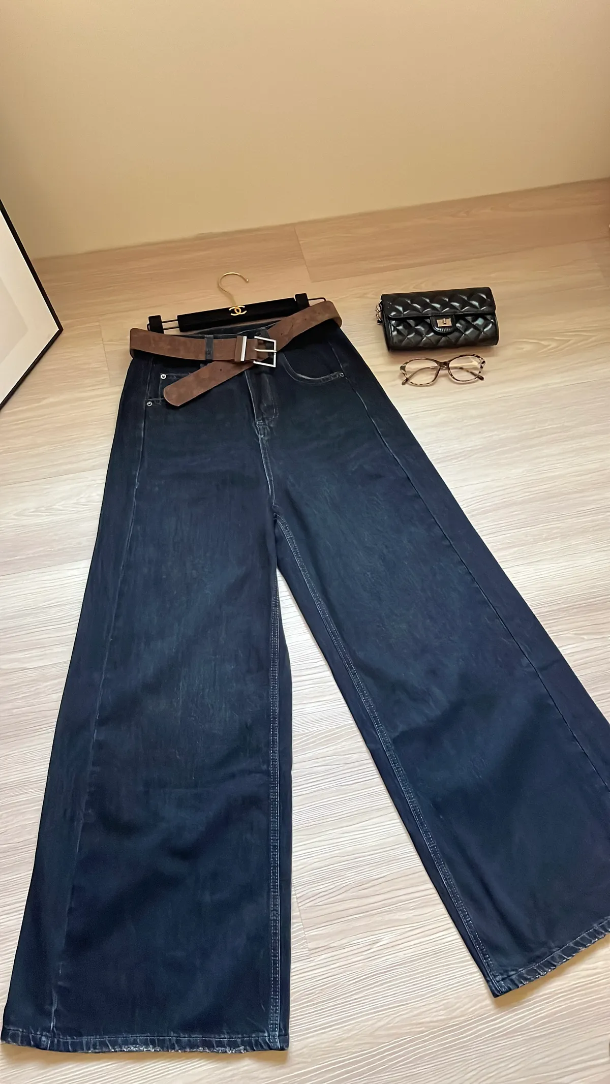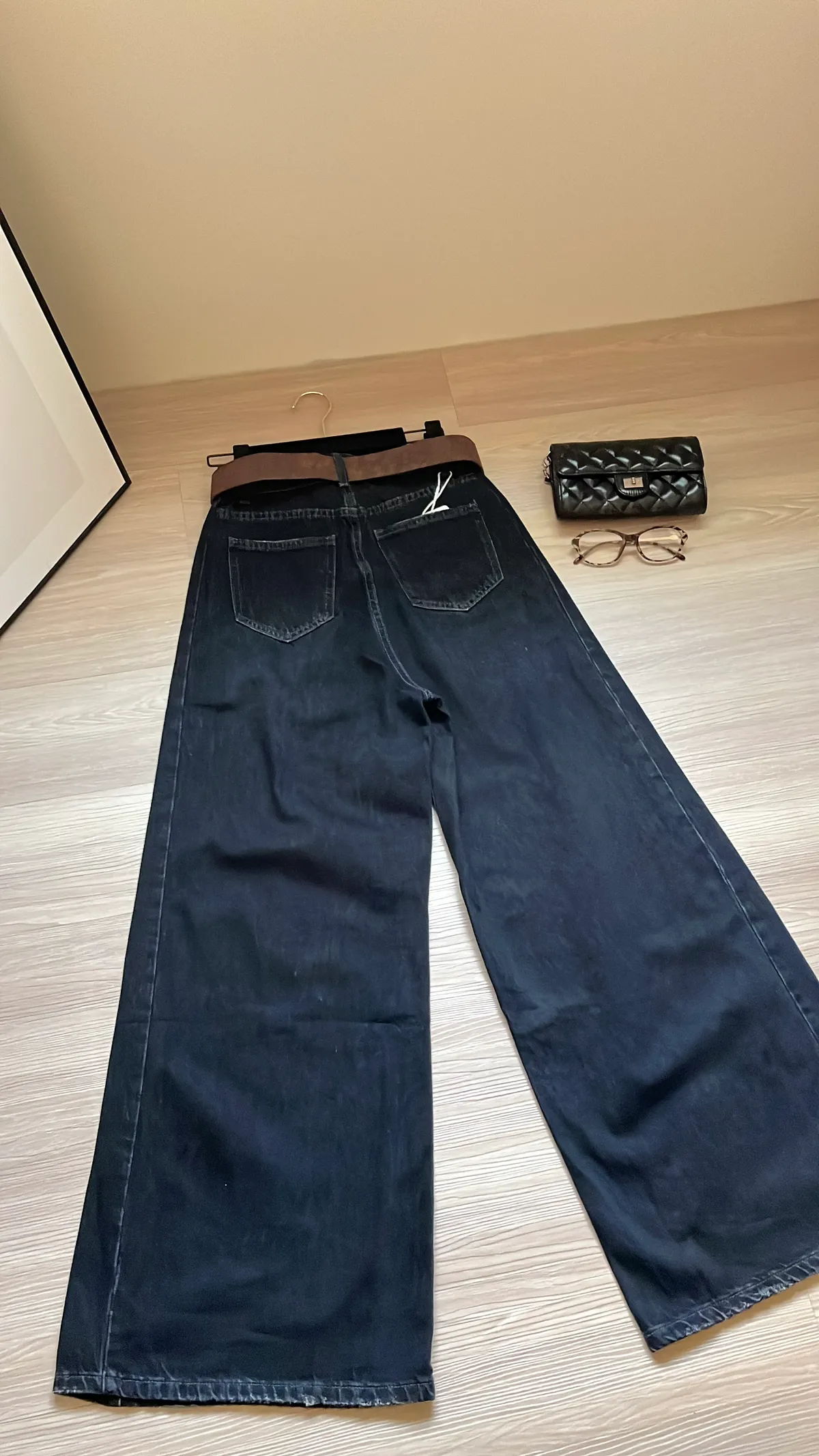 🔥追加70+件!梨形必收! 經典水洗牛仔高腰闊腿褲+麂皮皮帶👖
