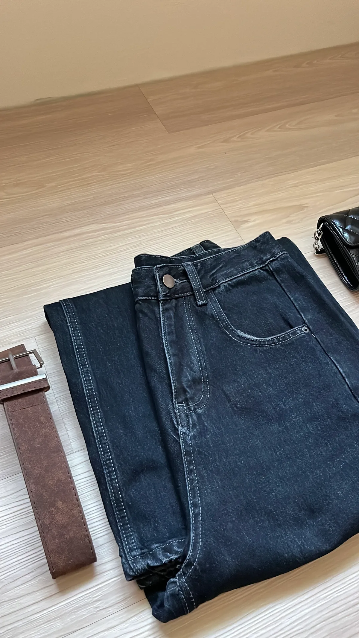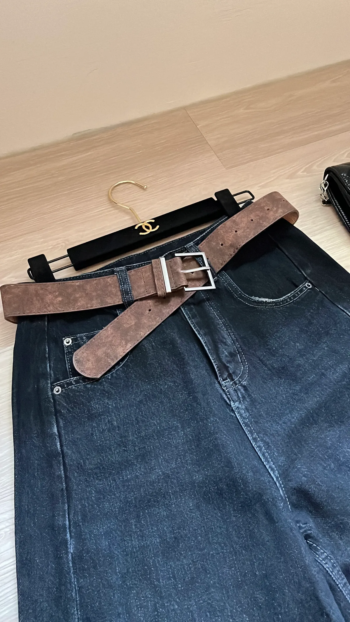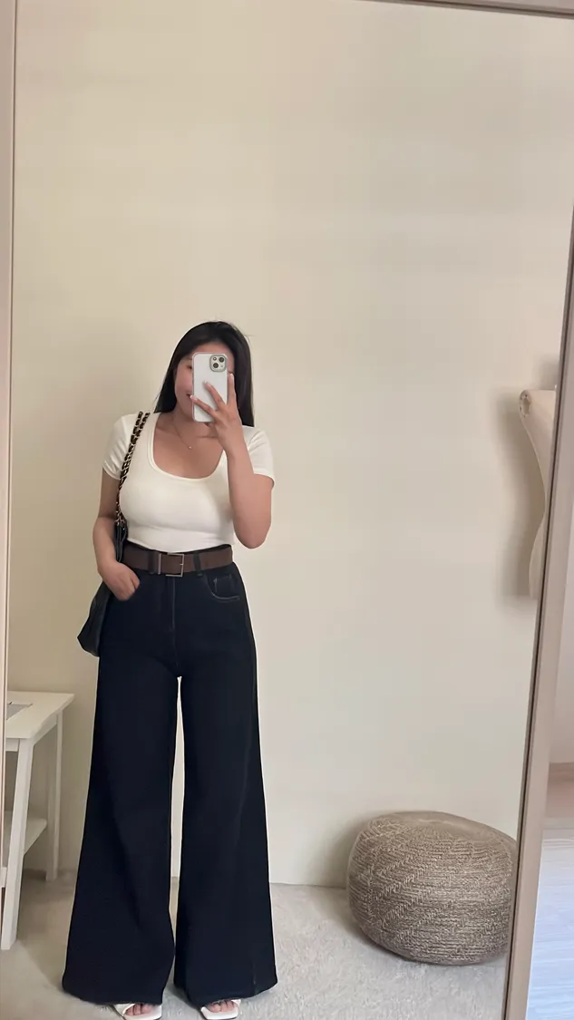 🔥追加70+件!梨形必收! 經典水洗牛仔高腰闊腿褲+麂皮皮帶👖