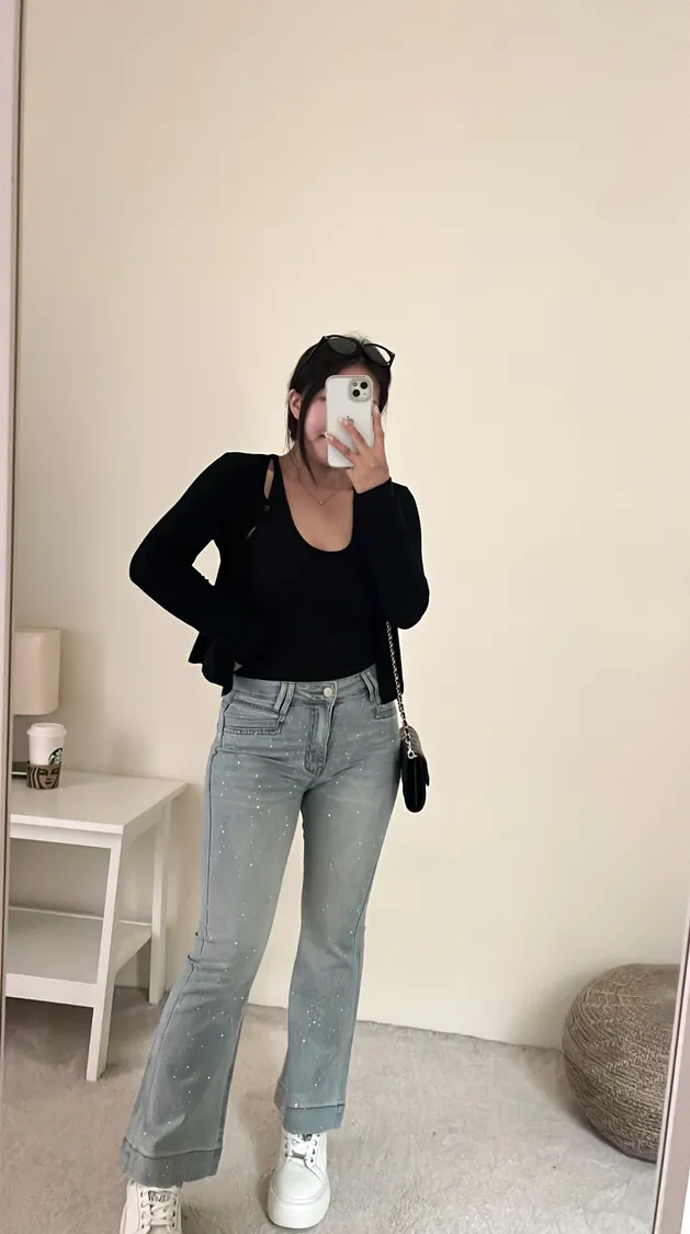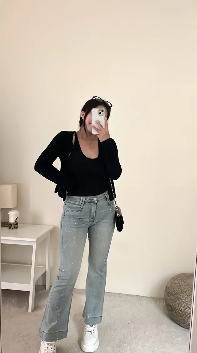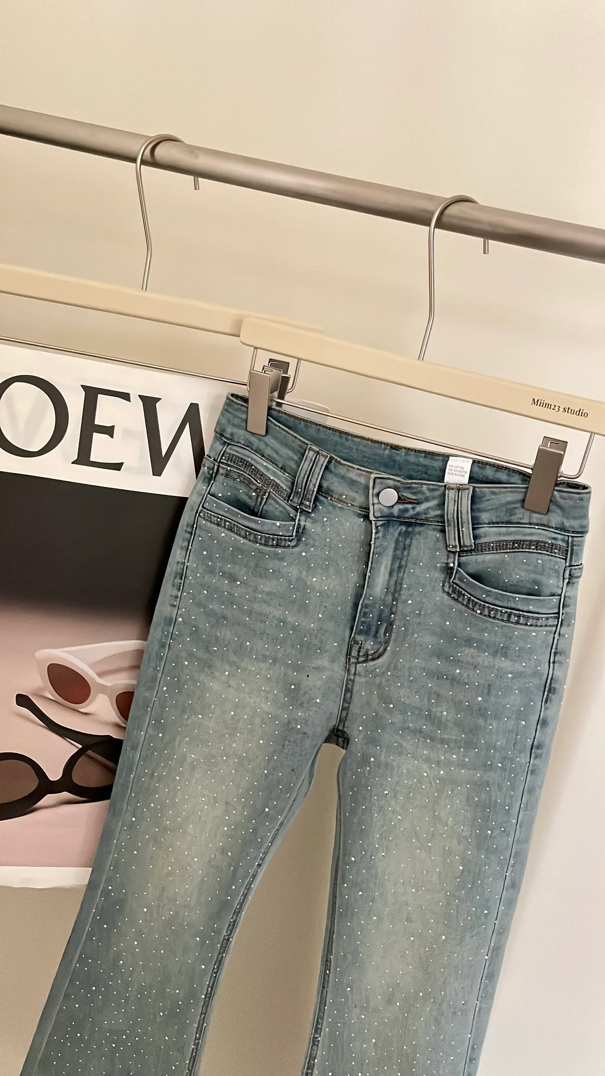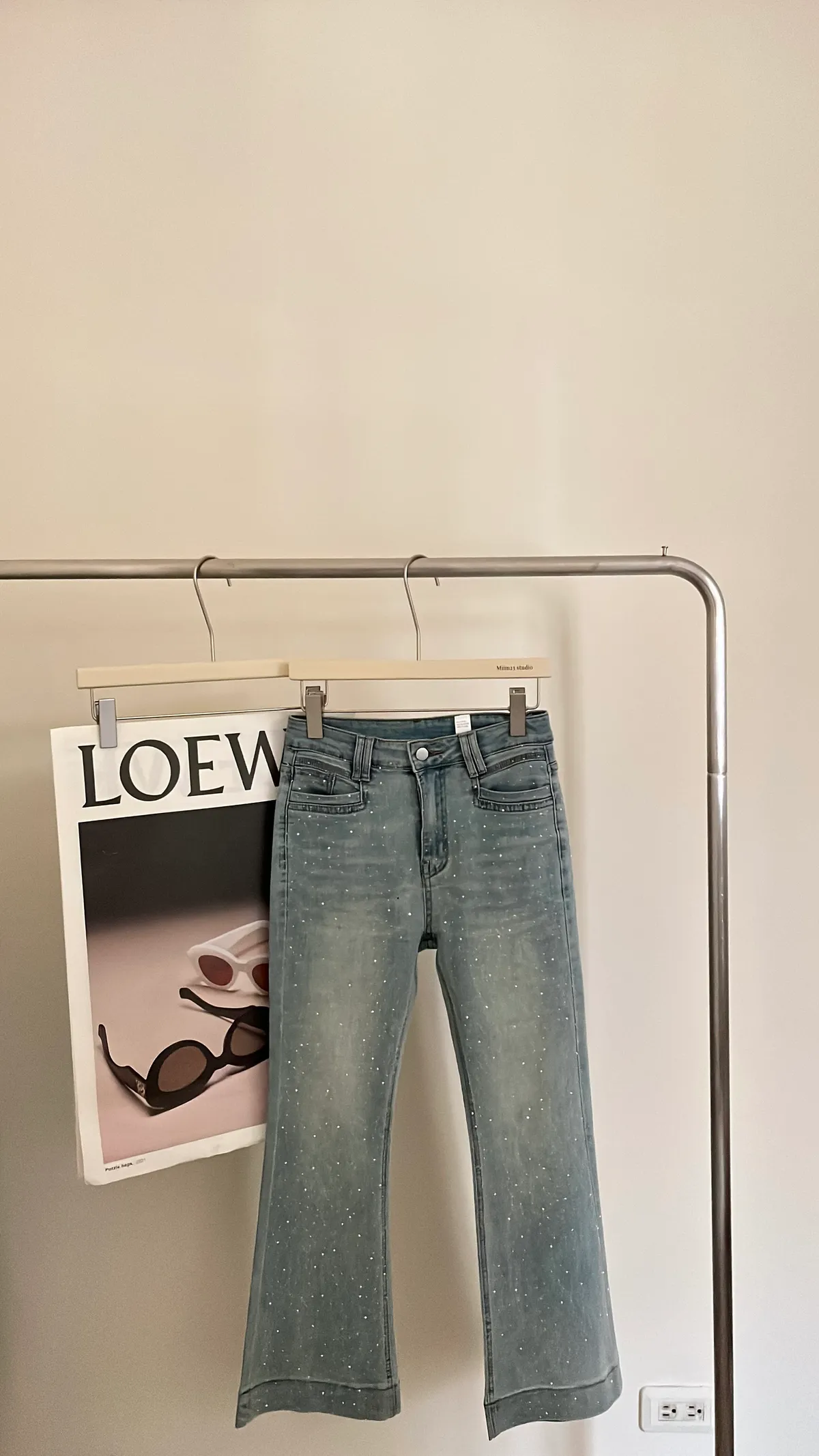 小個子155cm以下專屬!高級閃鑽彈力中腰貼身微喇叭褲🔥