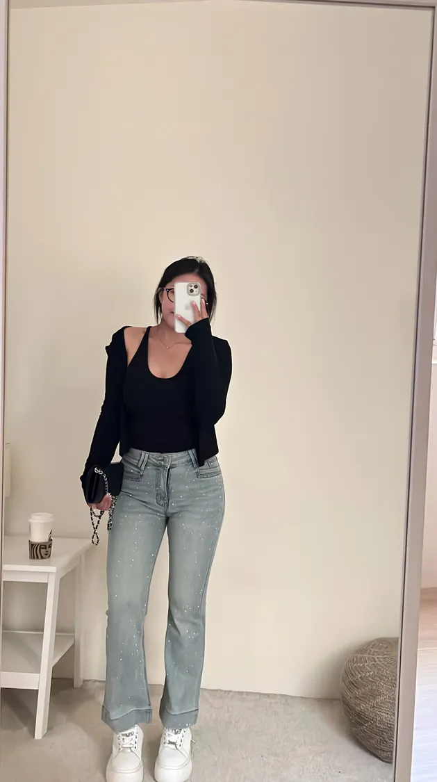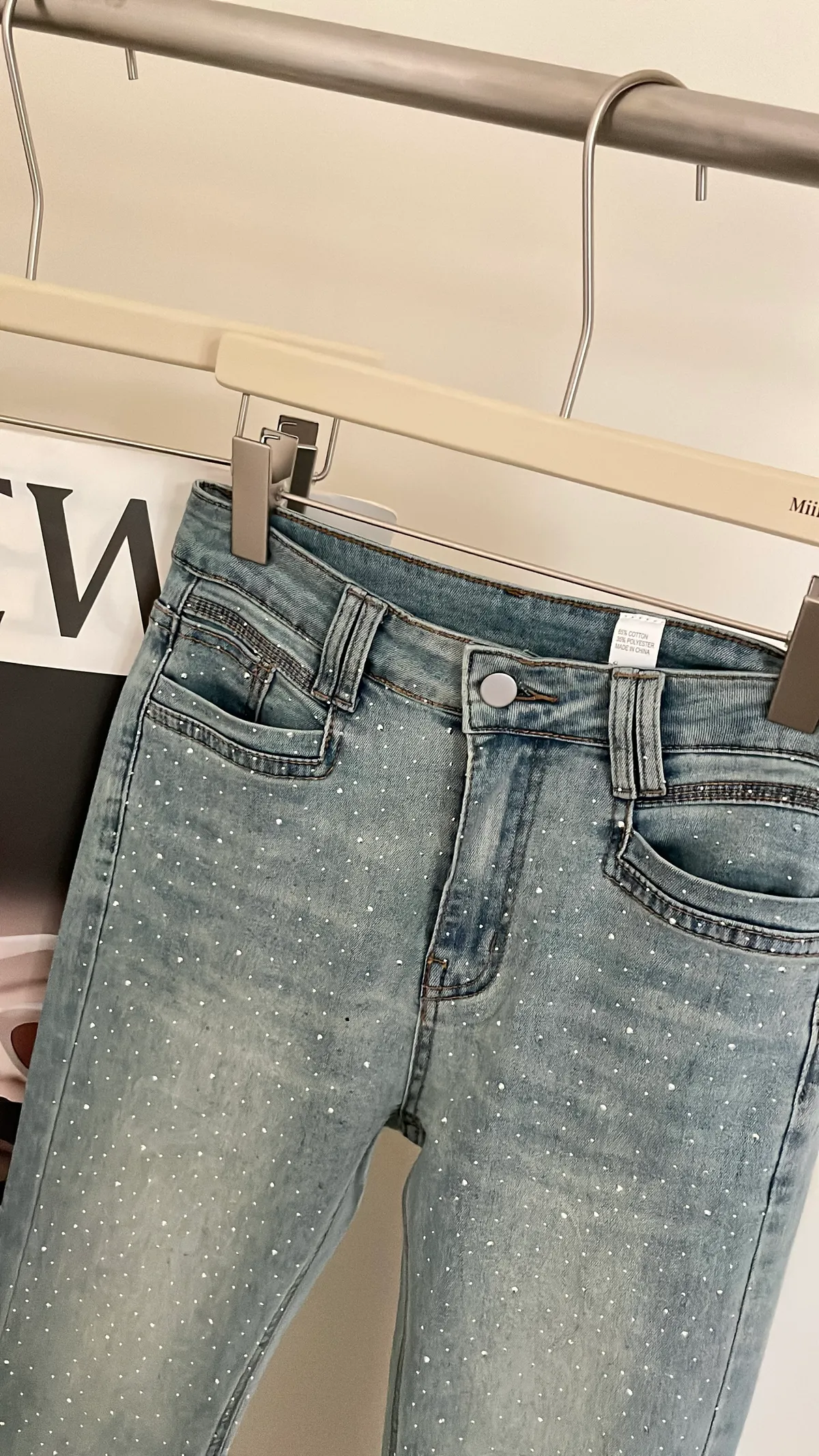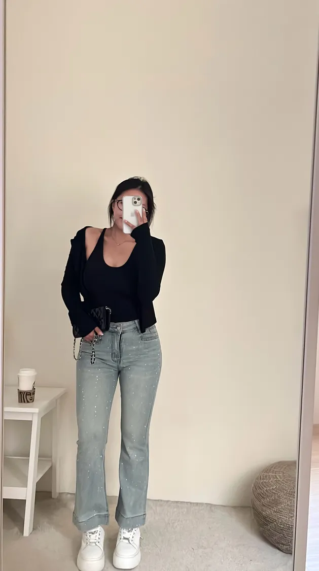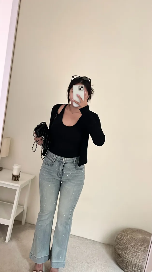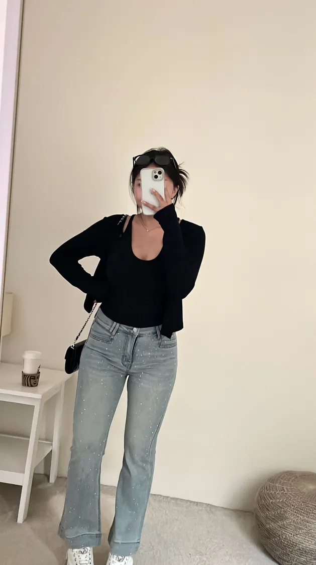 小個子155cm以下專屬!高級閃鑽彈力中腰貼身微喇叭褲🔥