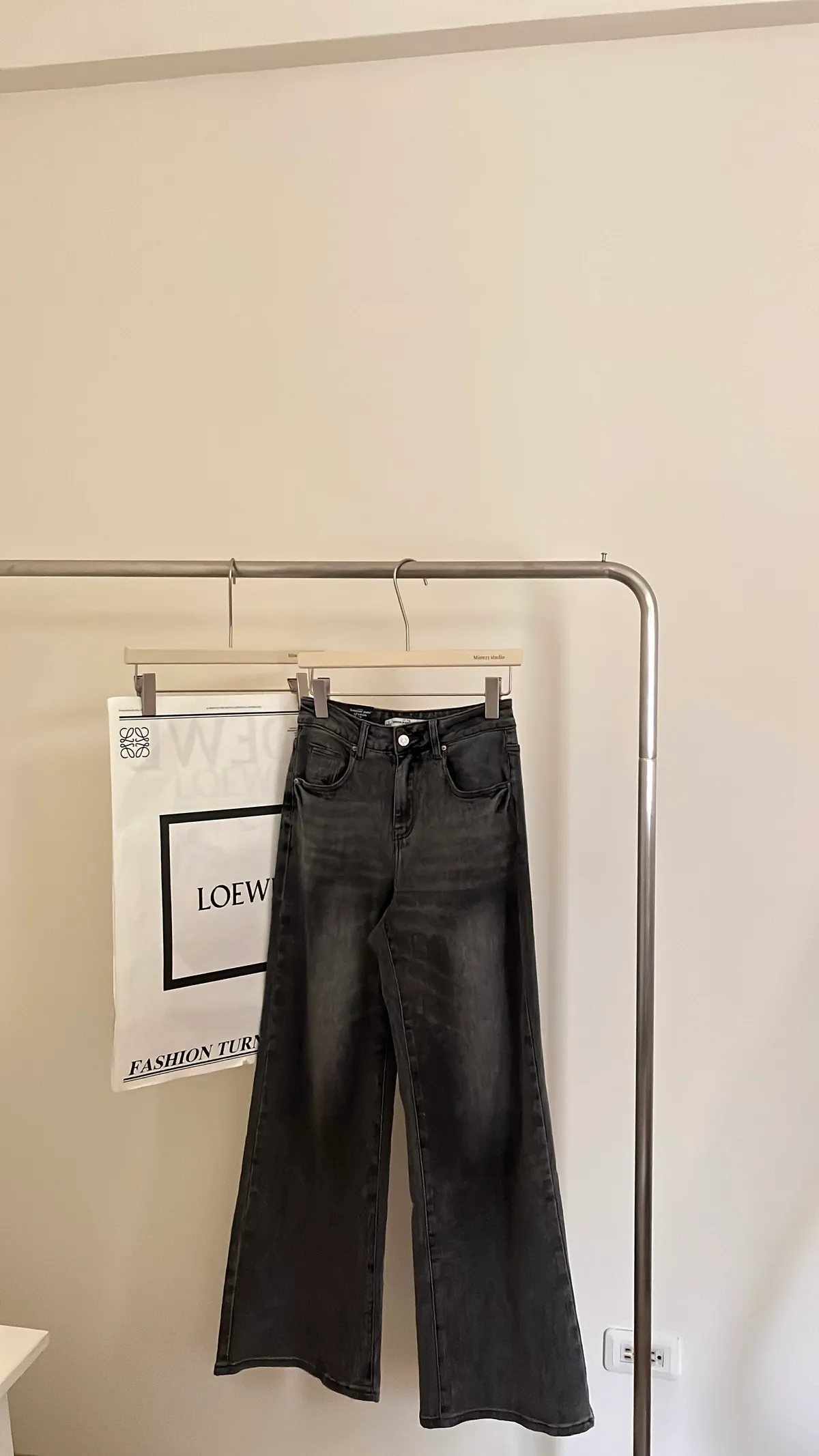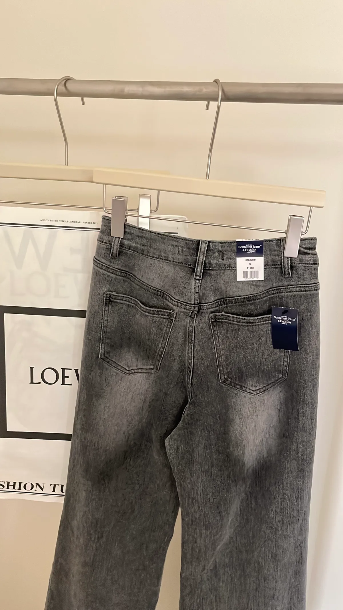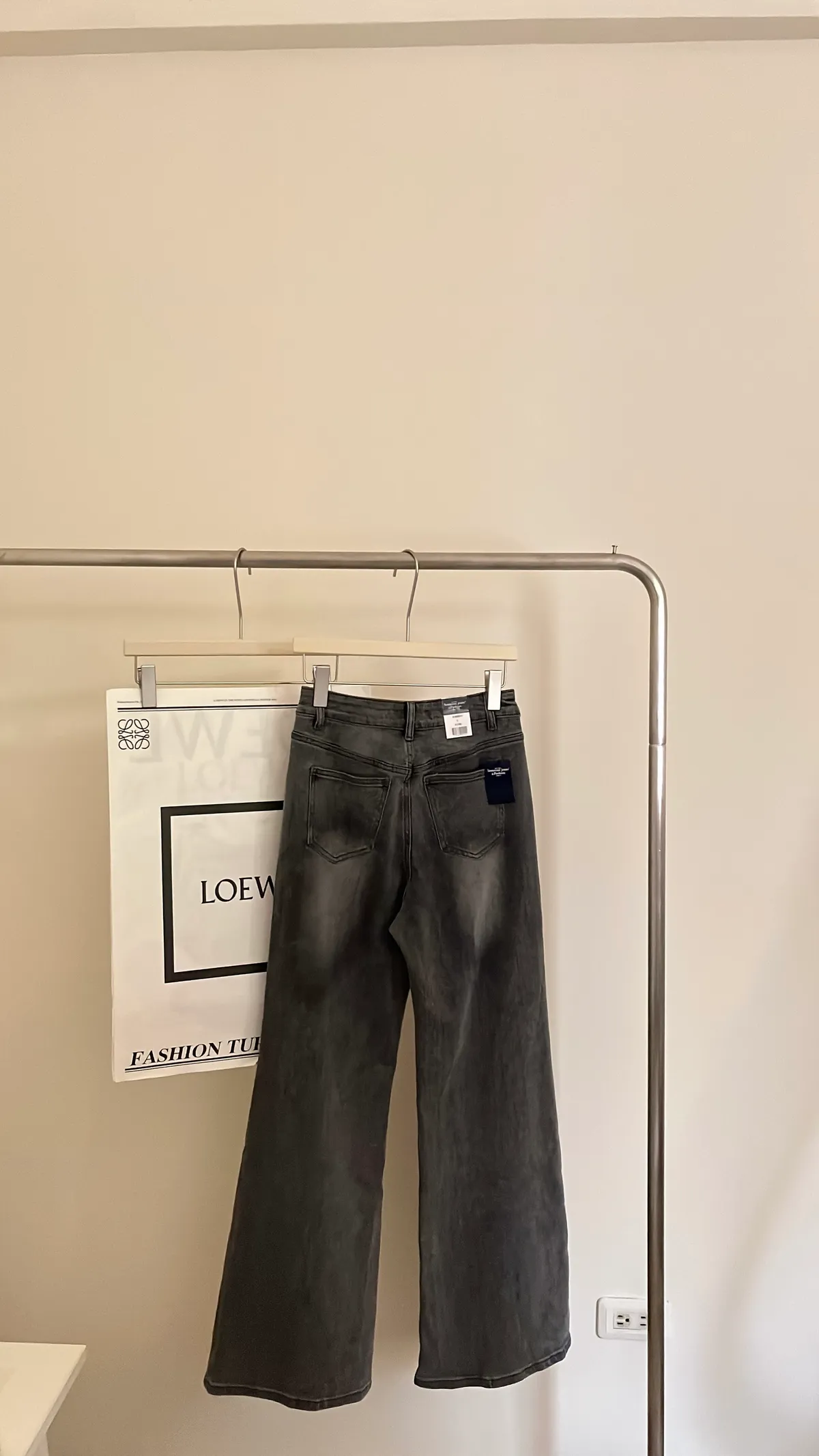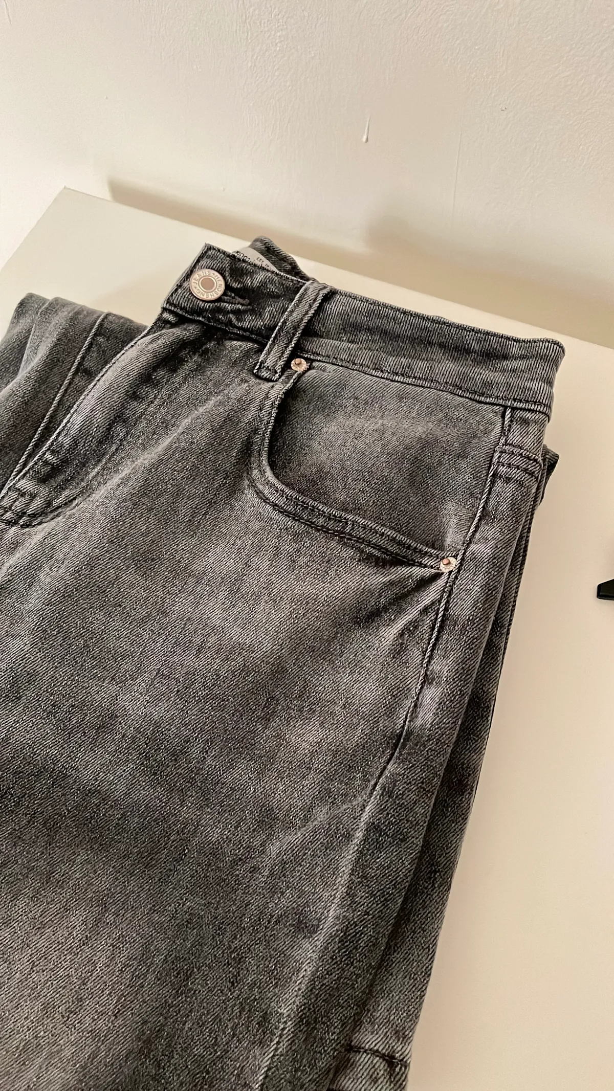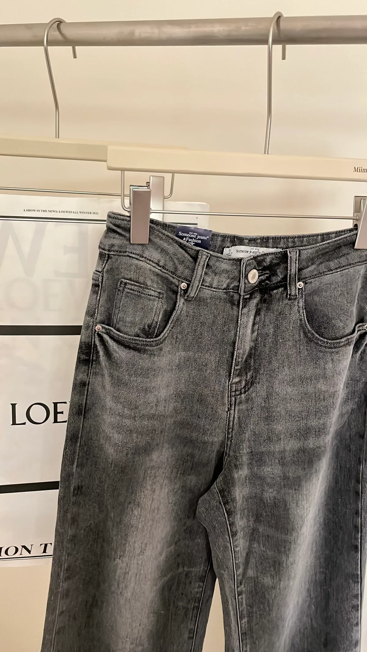 好穿!舒適高彈力! 質感碳灰刷色中高腰合身直筒褲 🪨