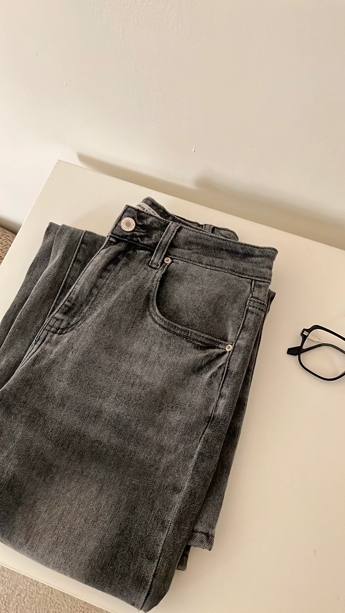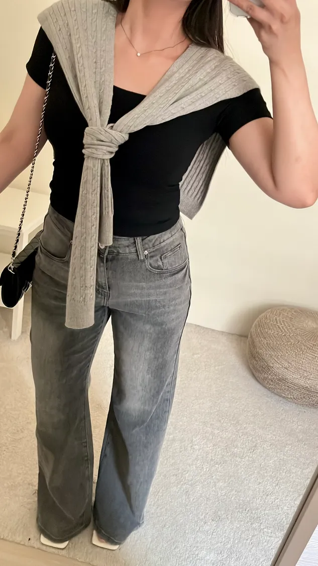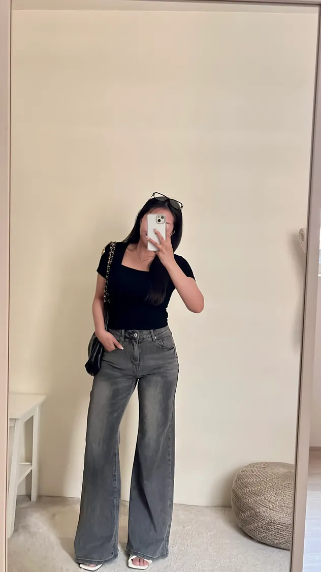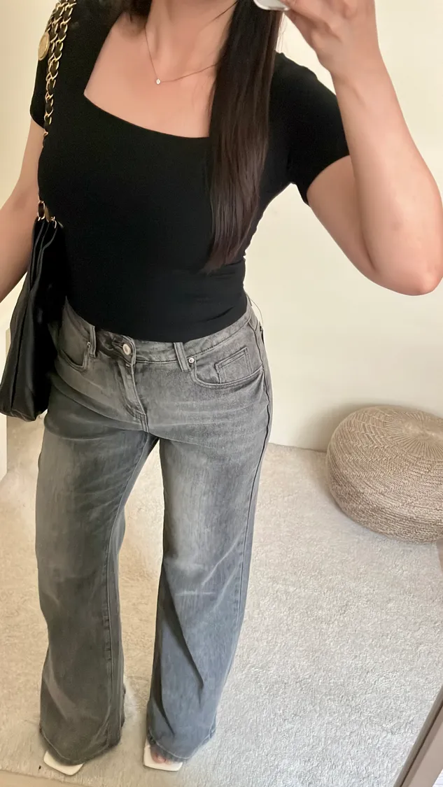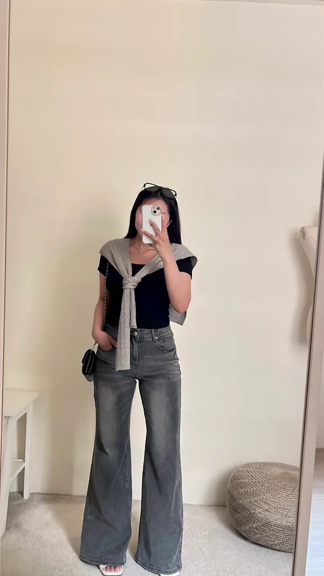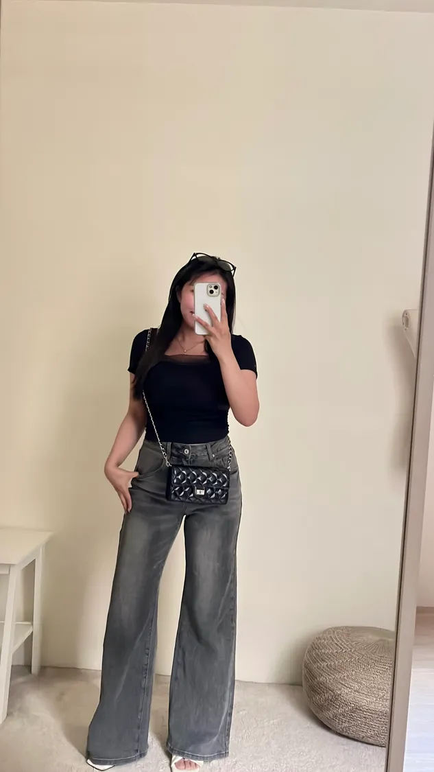 好穿!舒適高彈力! 質感碳灰刷色中高腰合身直筒褲 🪨