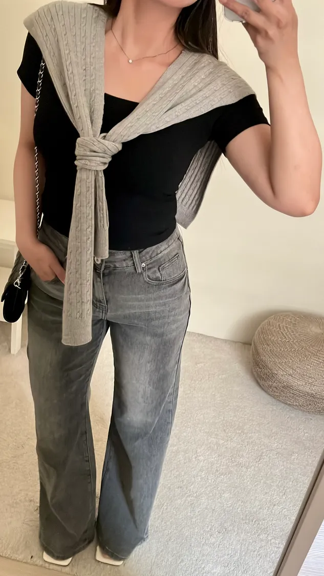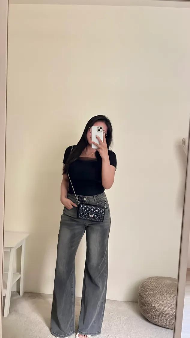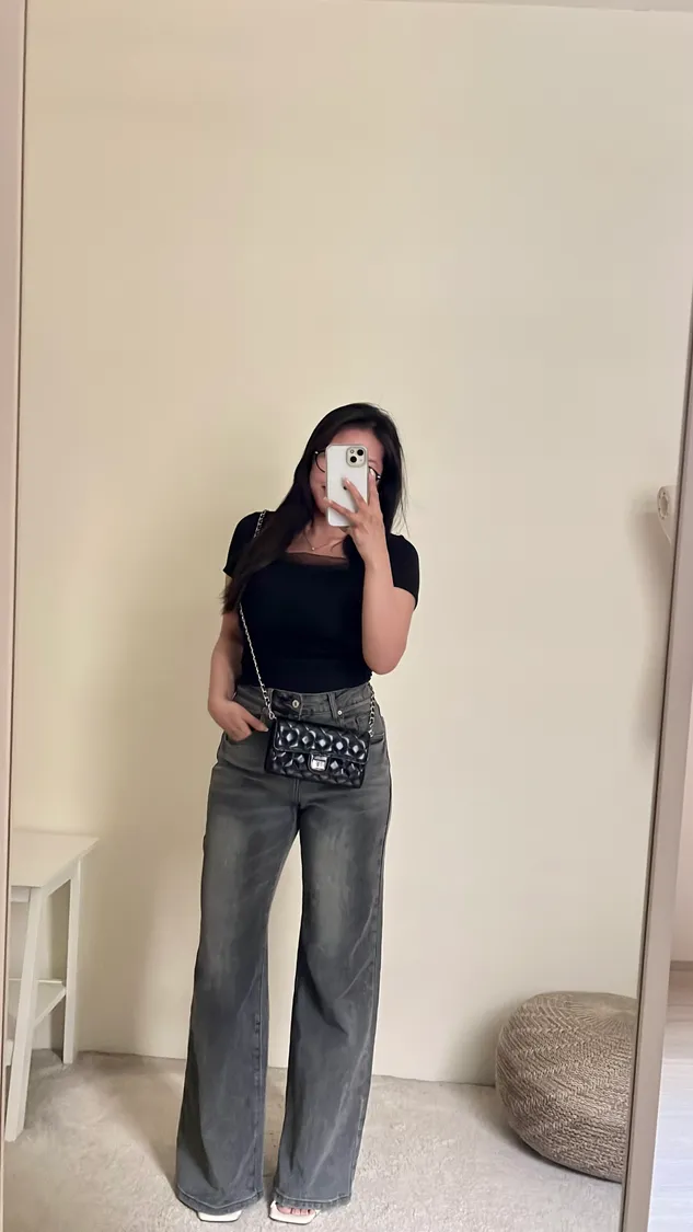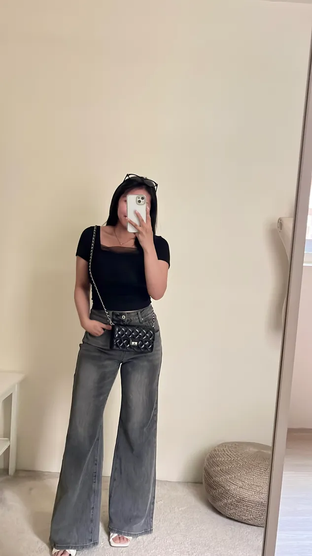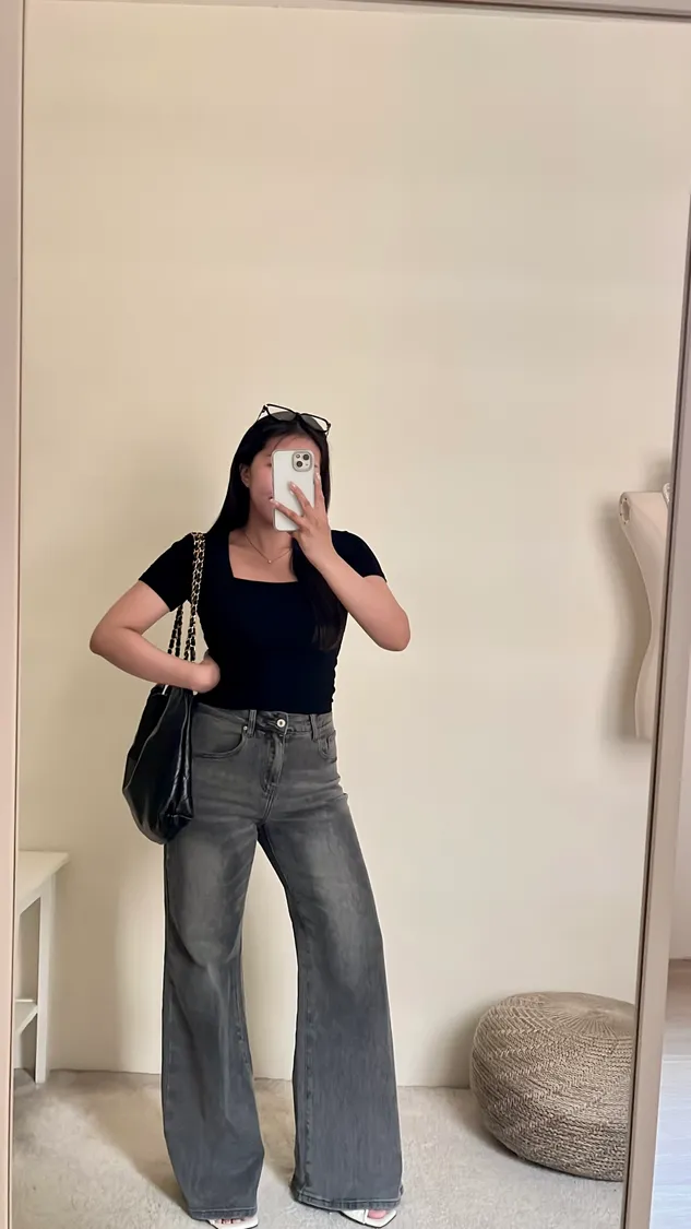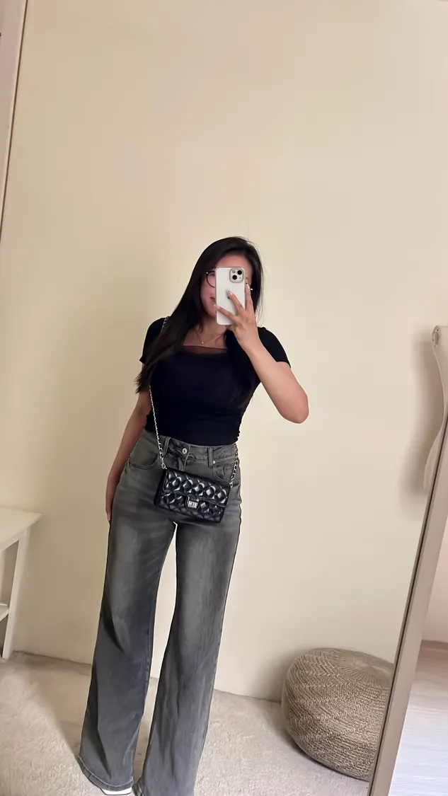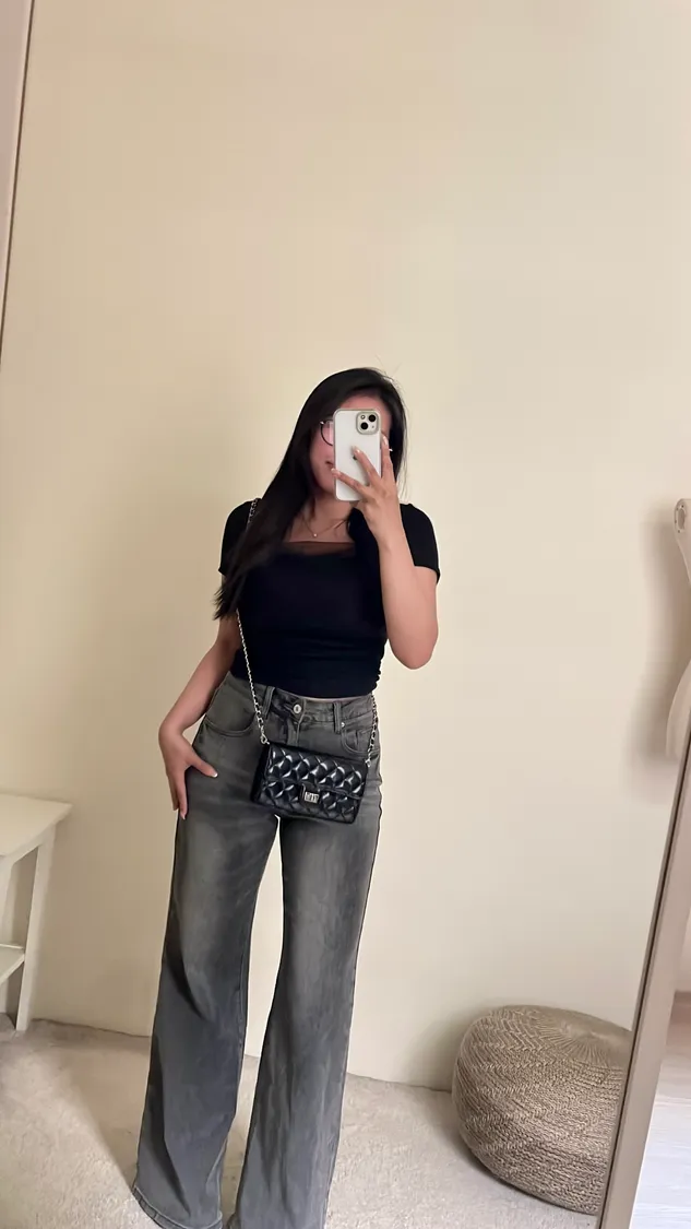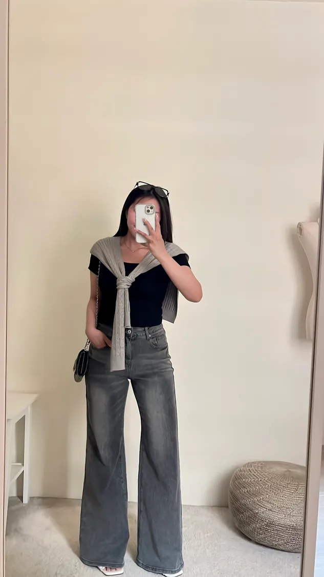 好穿!舒適高彈力! 質感碳灰刷色中高腰合身直筒褲 🪨