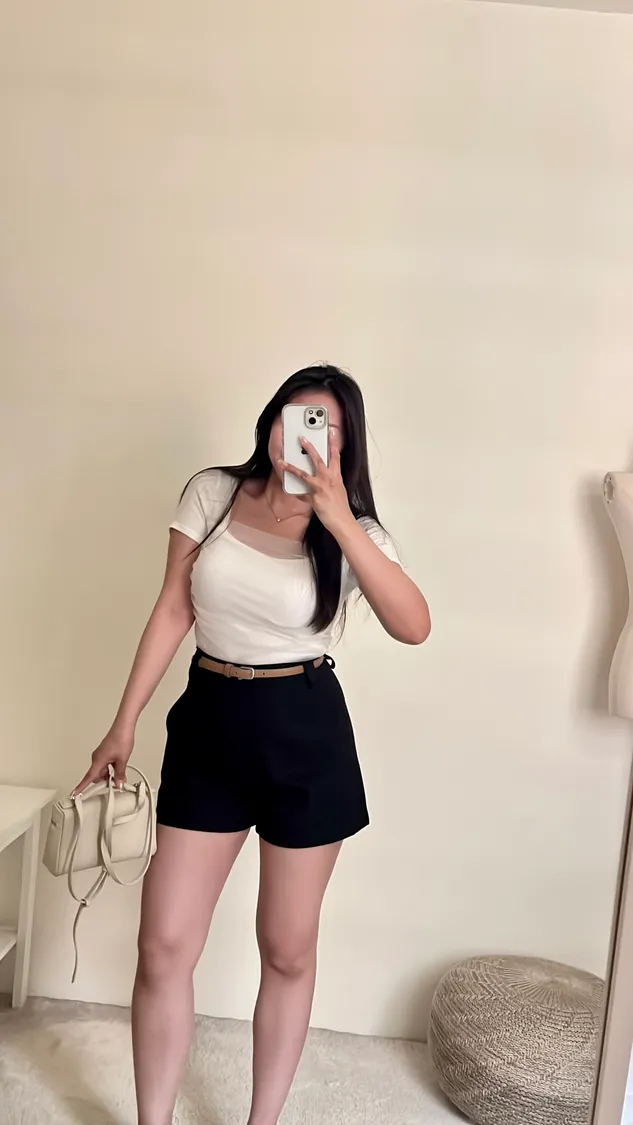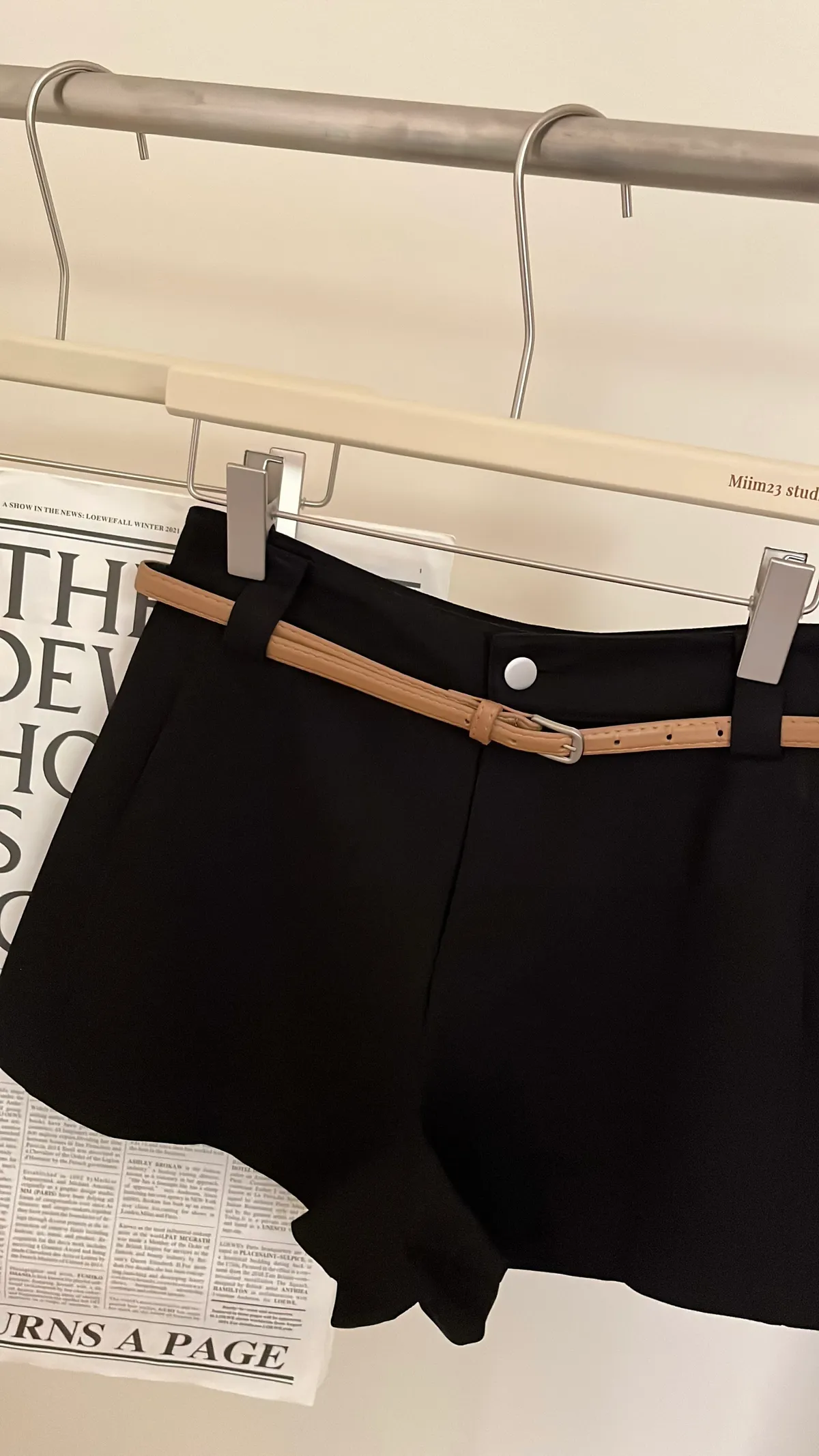 衣櫃長青單品!俐落修身高腰短褲+皮帶🌟