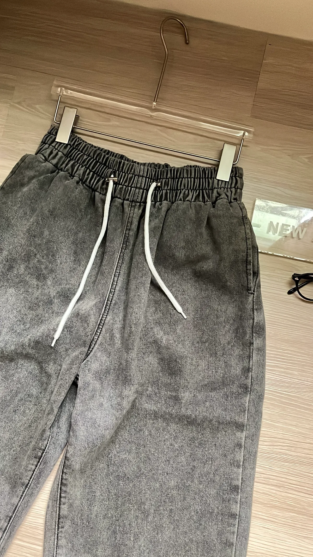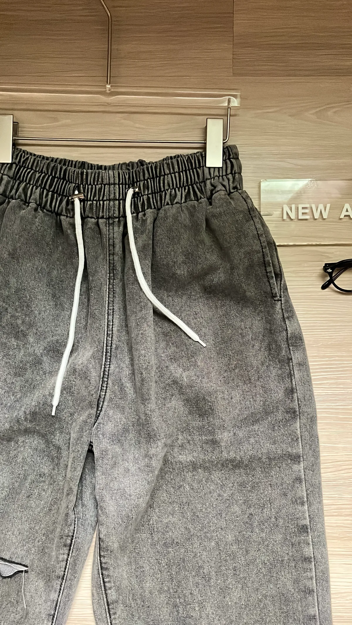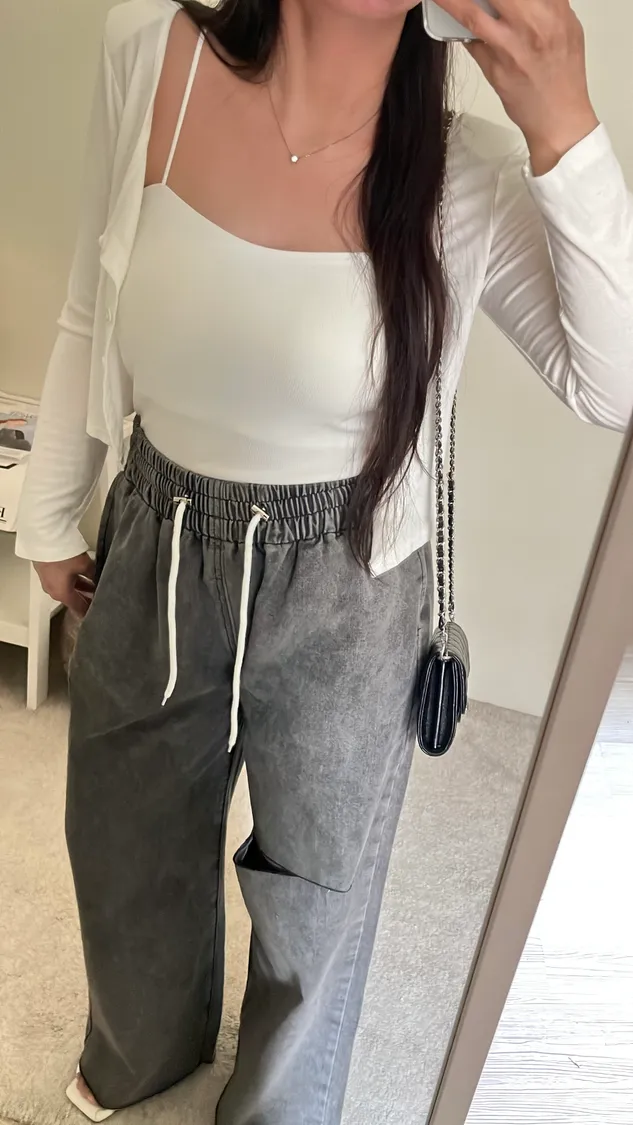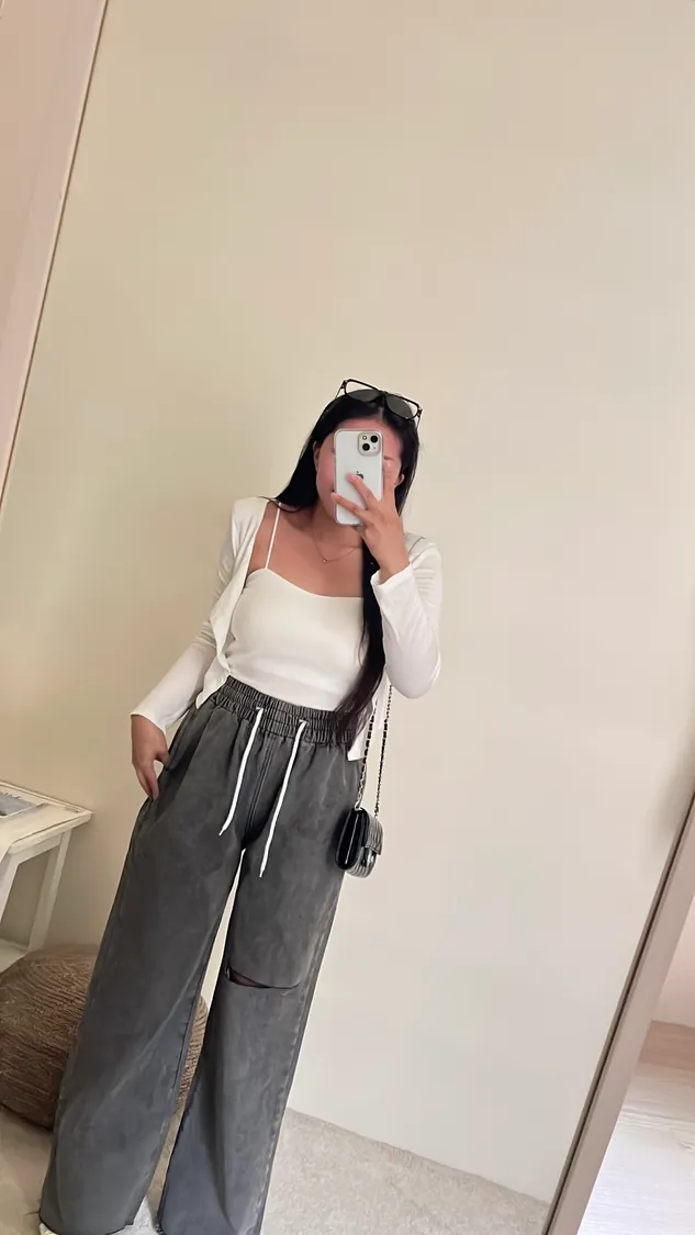 藏肉肉!抽繩割破牛仔落地直筒長寬褲!