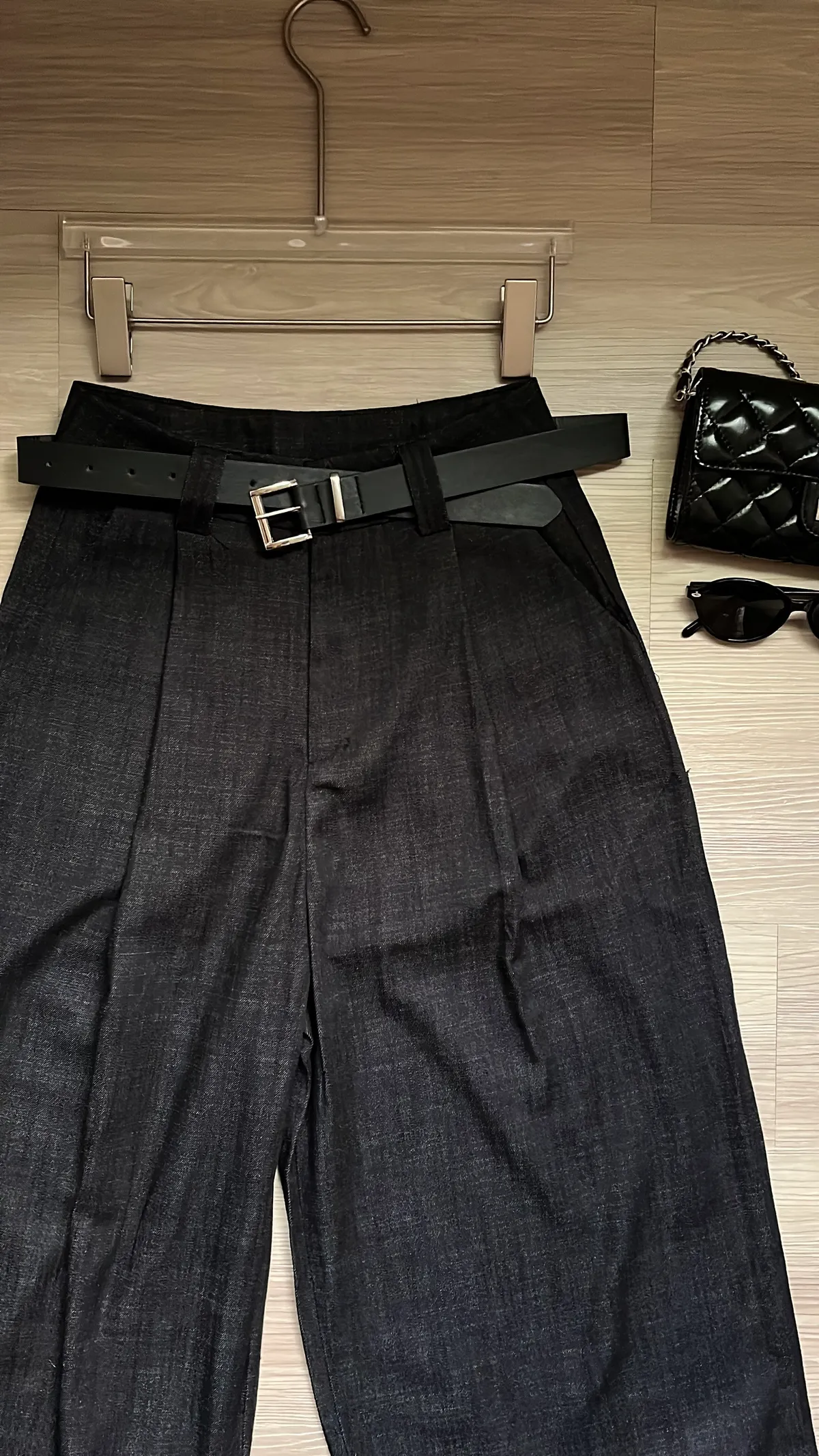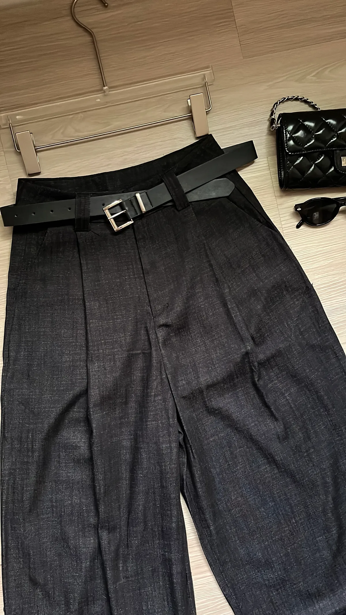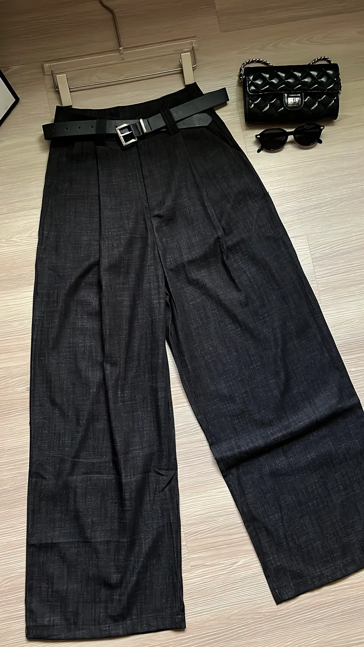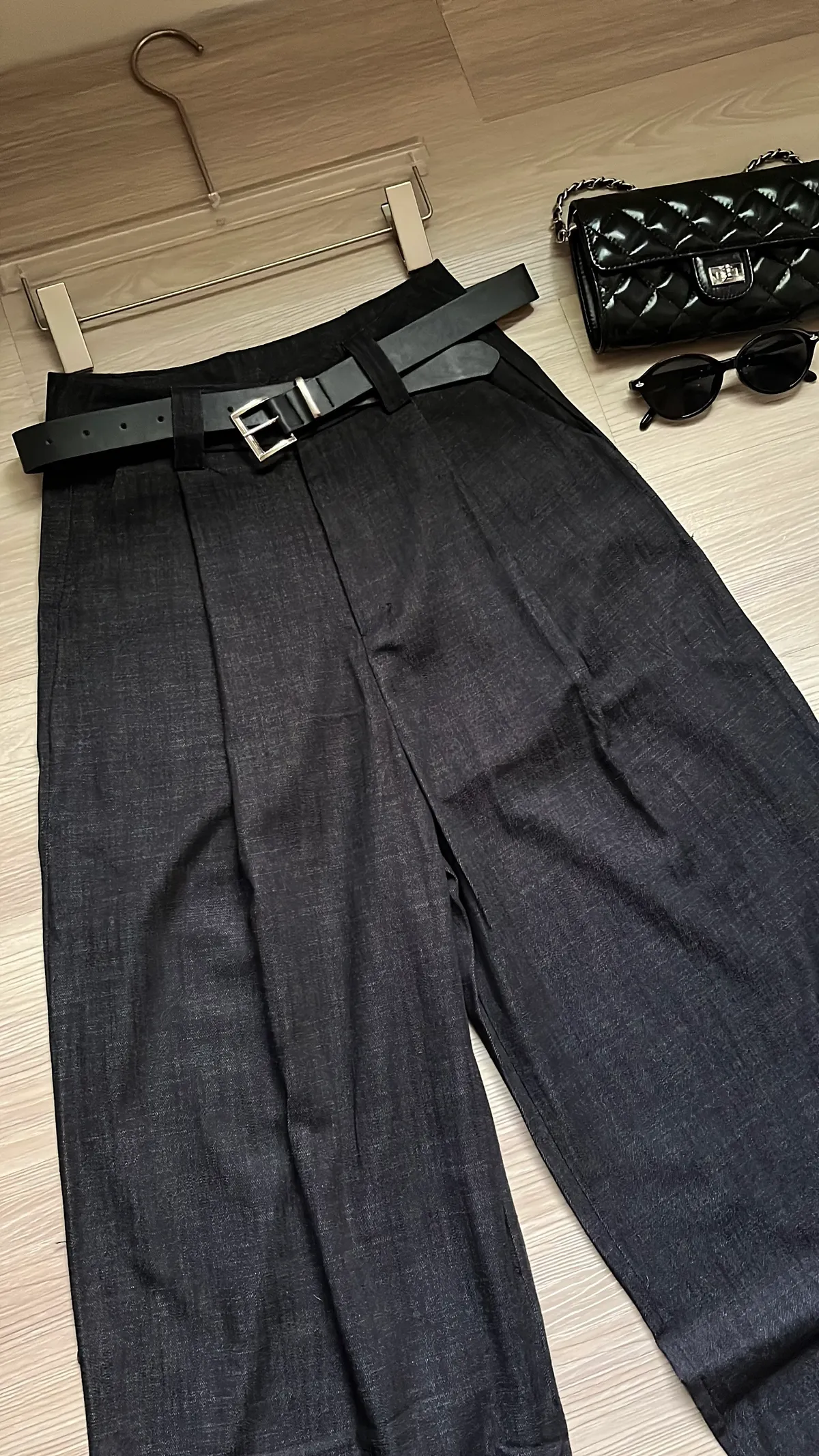 高級感穿搭俐落直筒闊腿褲+皮帶✨
