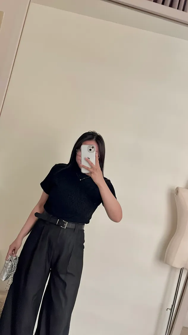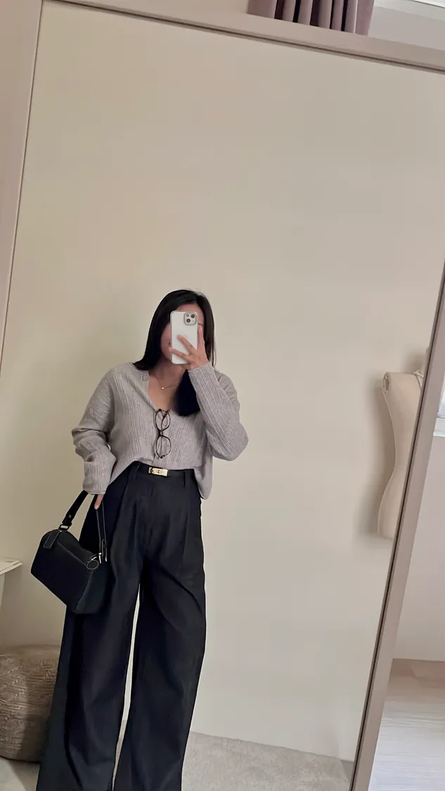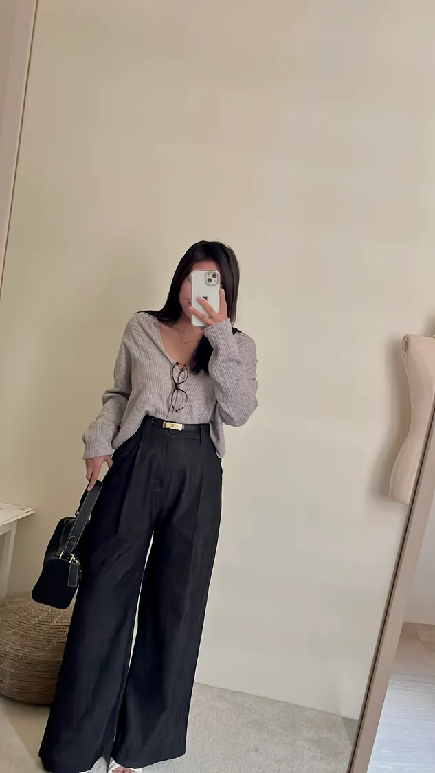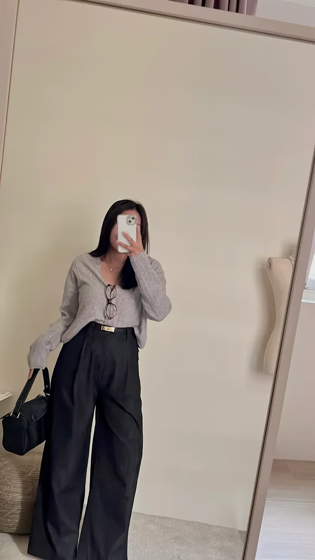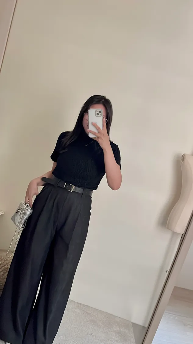高級感穿搭俐落直筒闊腿褲+皮帶✨