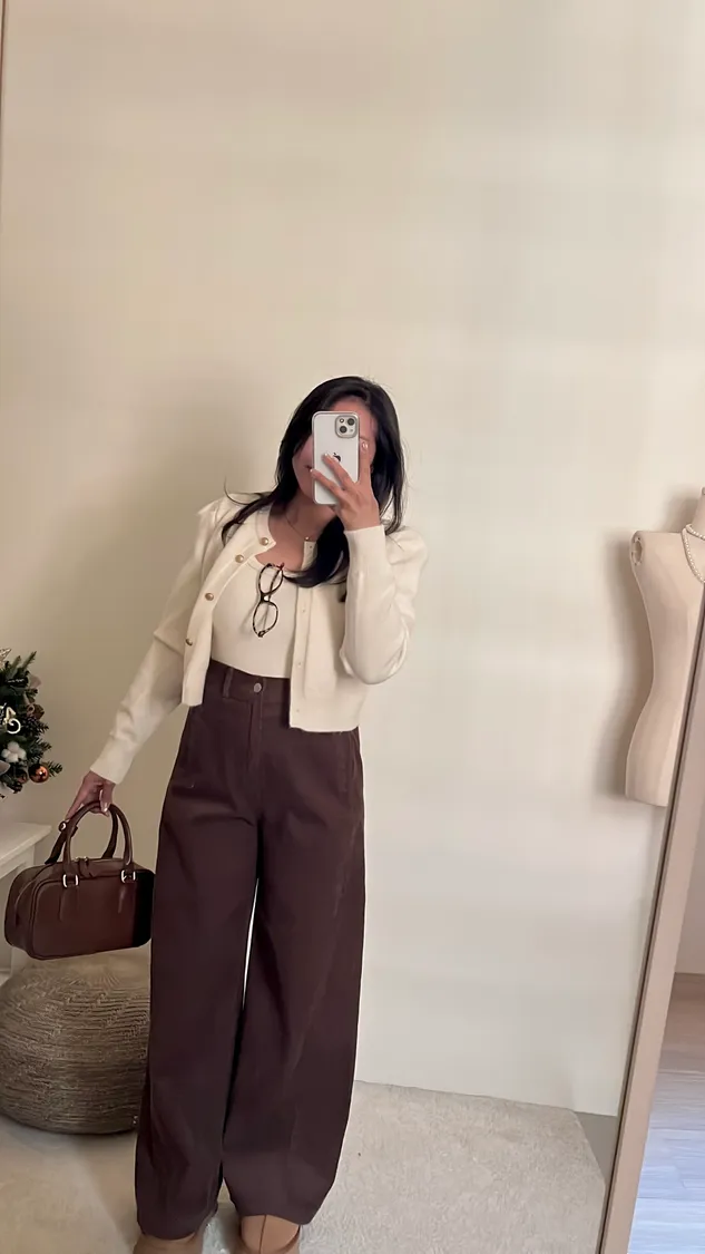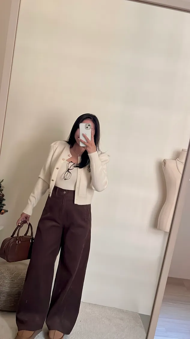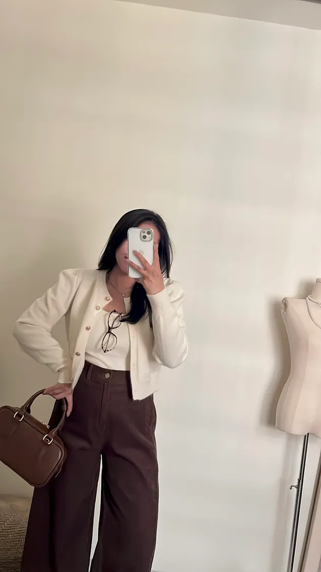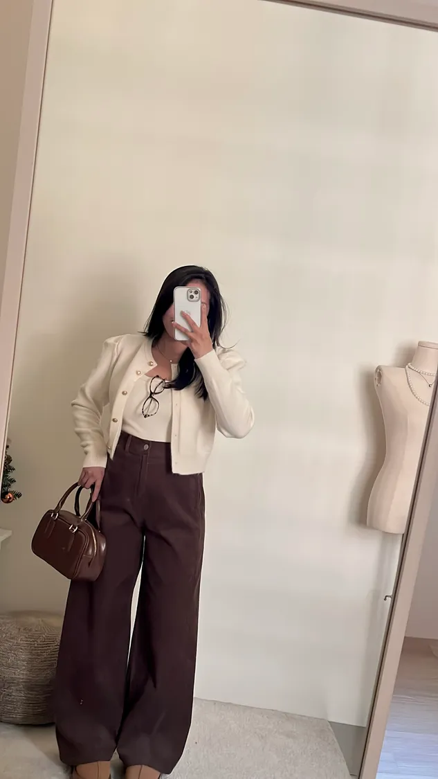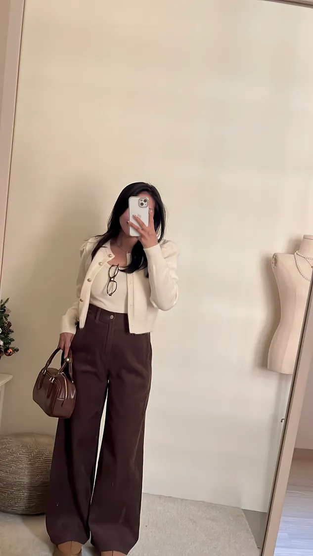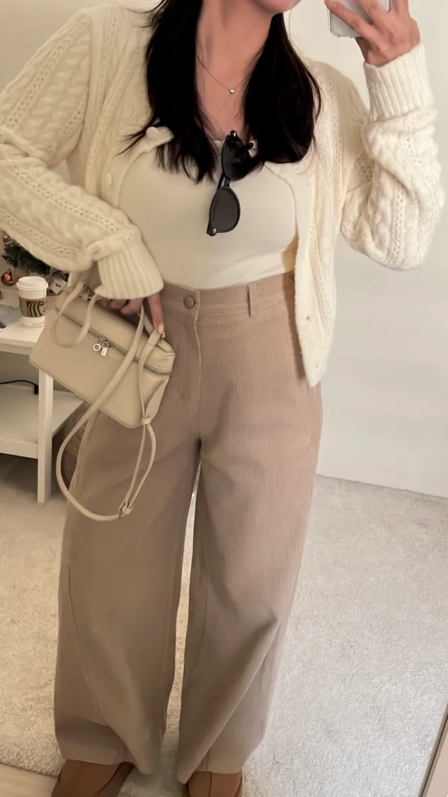復古氛圍感拿捏!高腰修身燈芯絨寬褲!