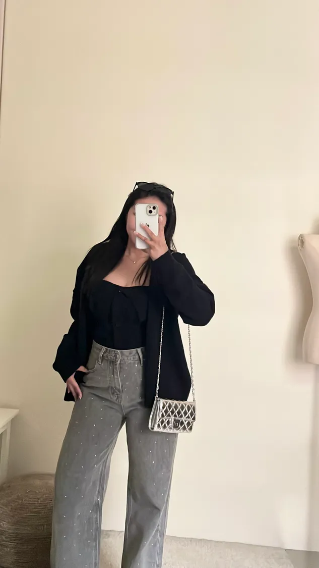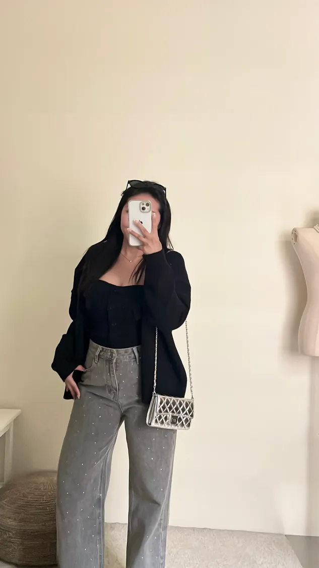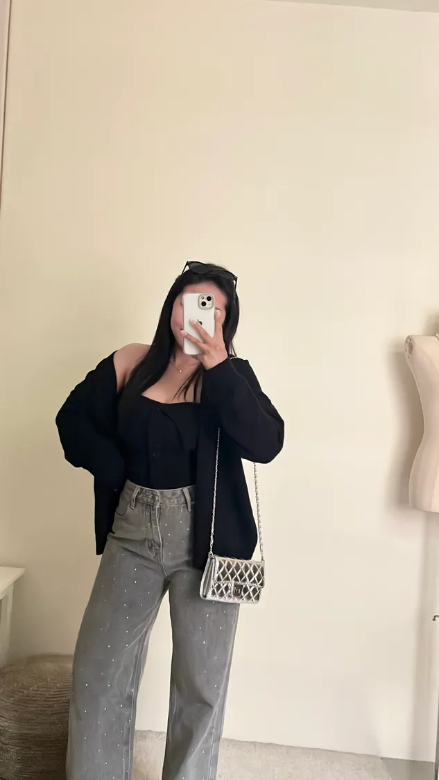 配上長版罩衫整套很有份量感✨️
