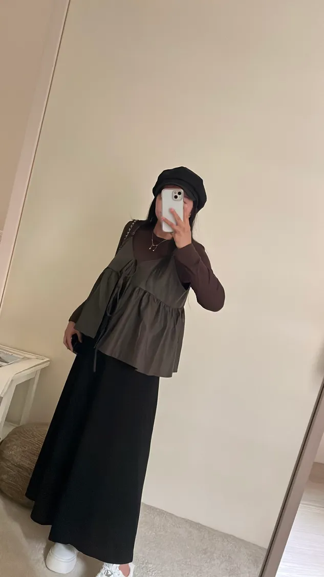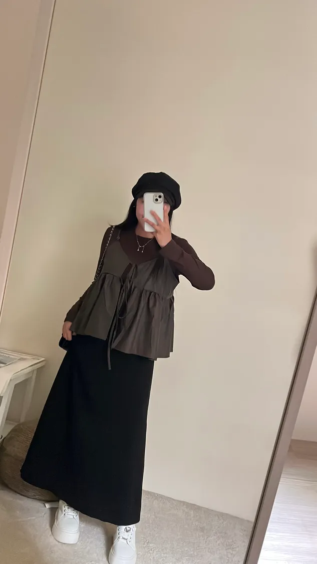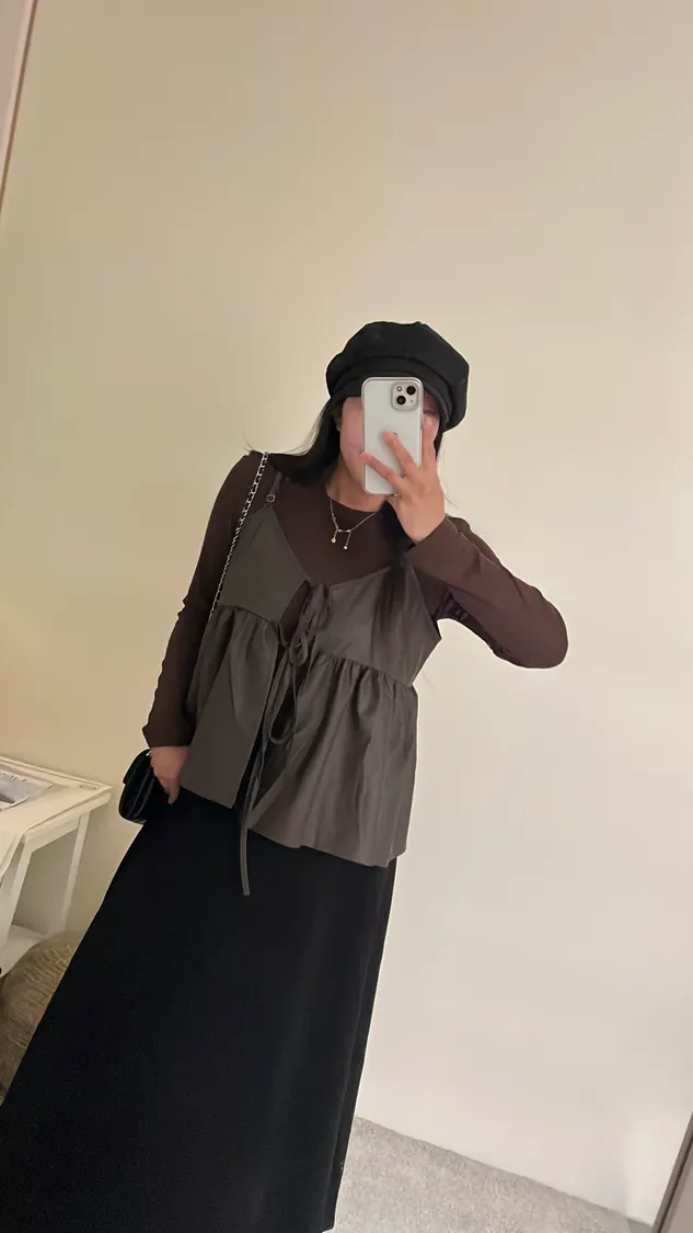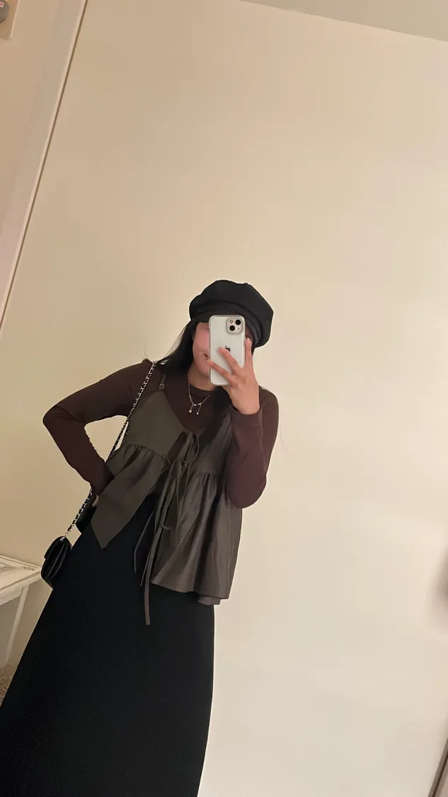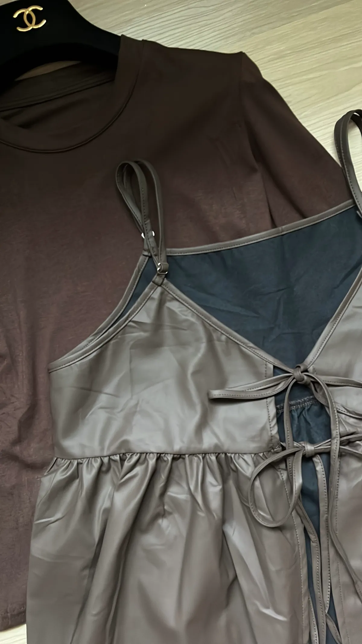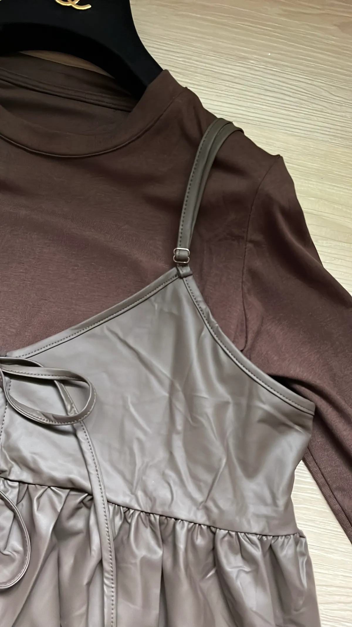 自帶氛圍感! 精緻皮革綁繩背心+基本彈性打底上衣二件組SET