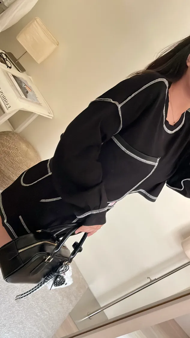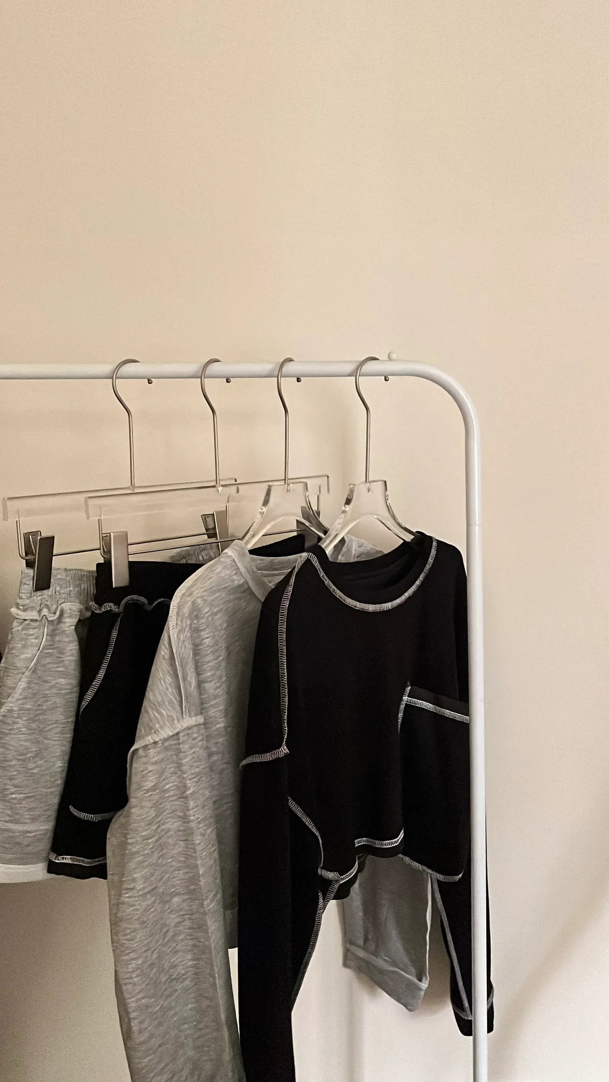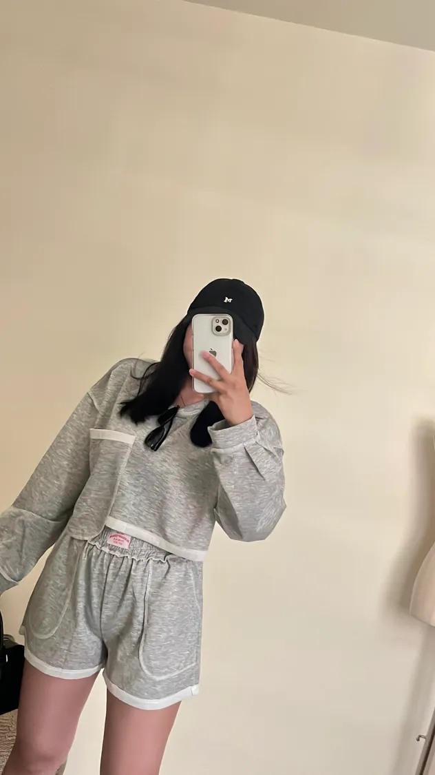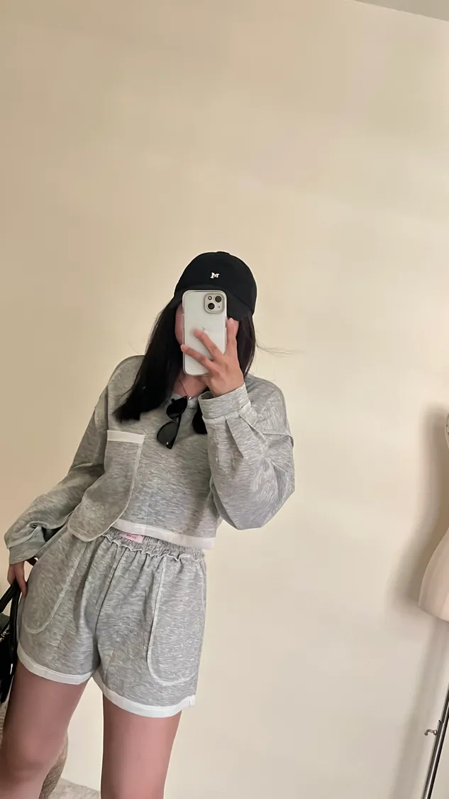 休閒Look!車線太空棉設計長袖上衣+鬆緊短褲二件組SET