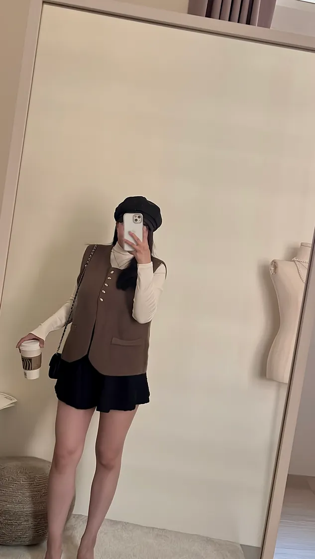 打底衣不是死白的顏色,帶點奶色搭配起來很柔很氣質😚😚
