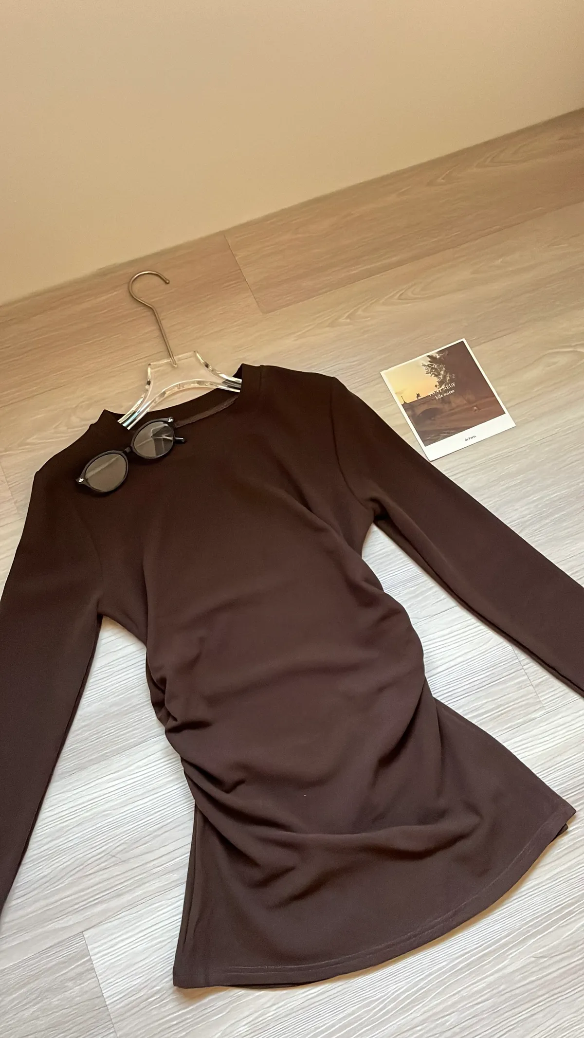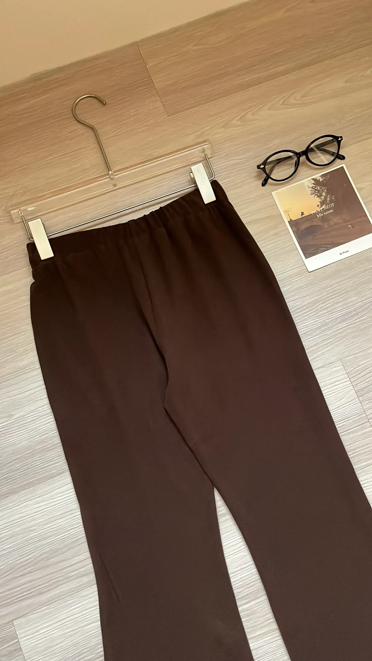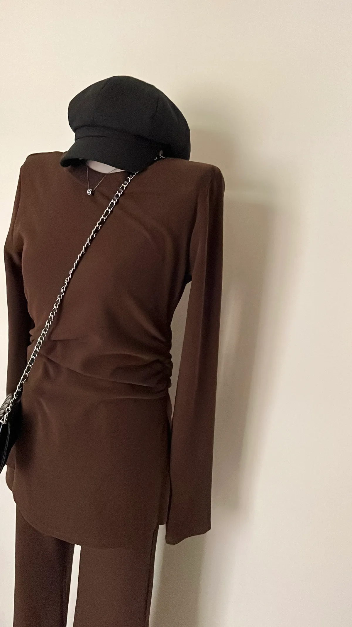☕️高級可可棕磨毛彈力抓皺上衣+喇叭褲二件組SET