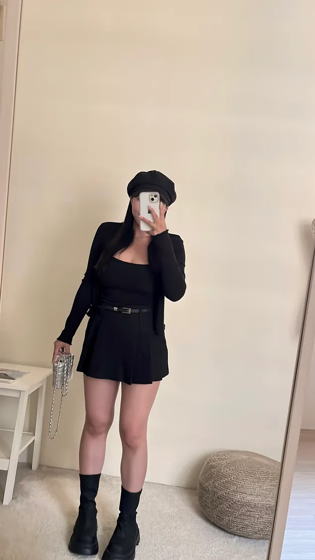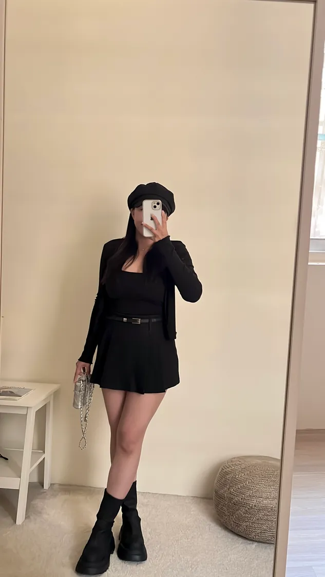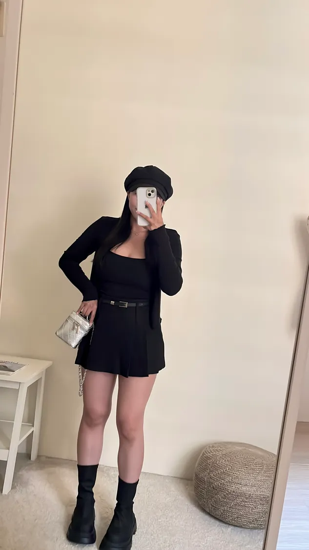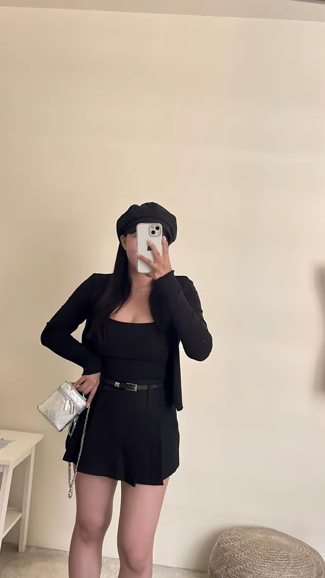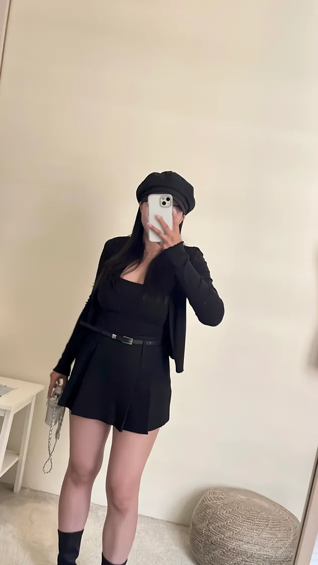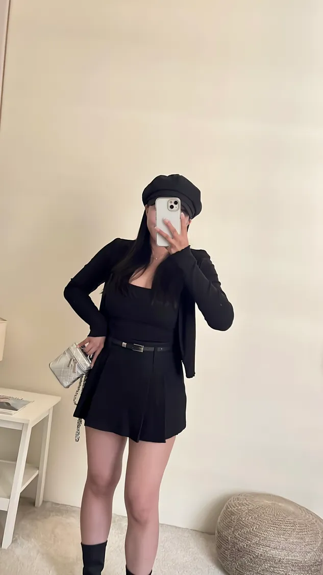 高級俐落感百褶短褲裙+細皮帶✨