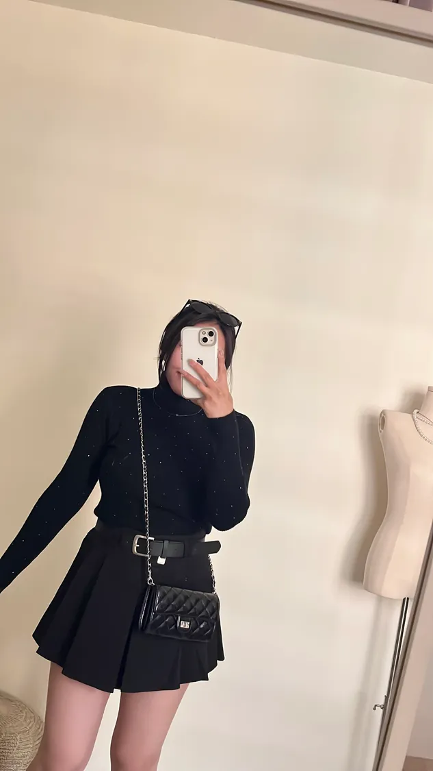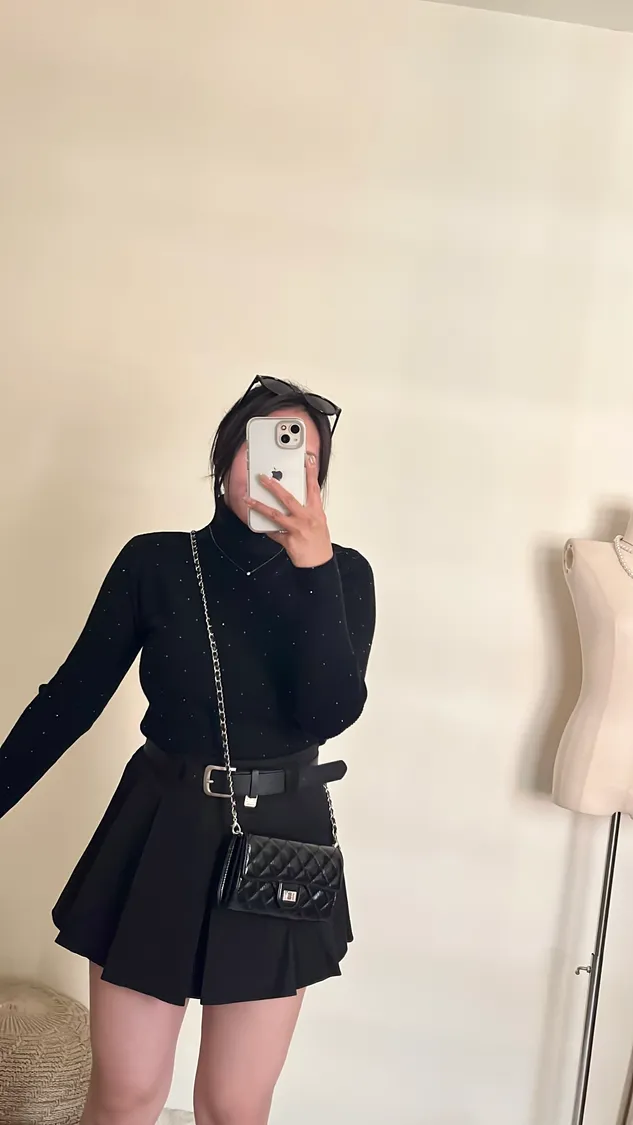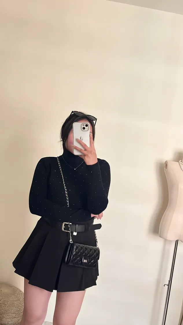 超美亮鑽高領針織彈力打底上衣💍