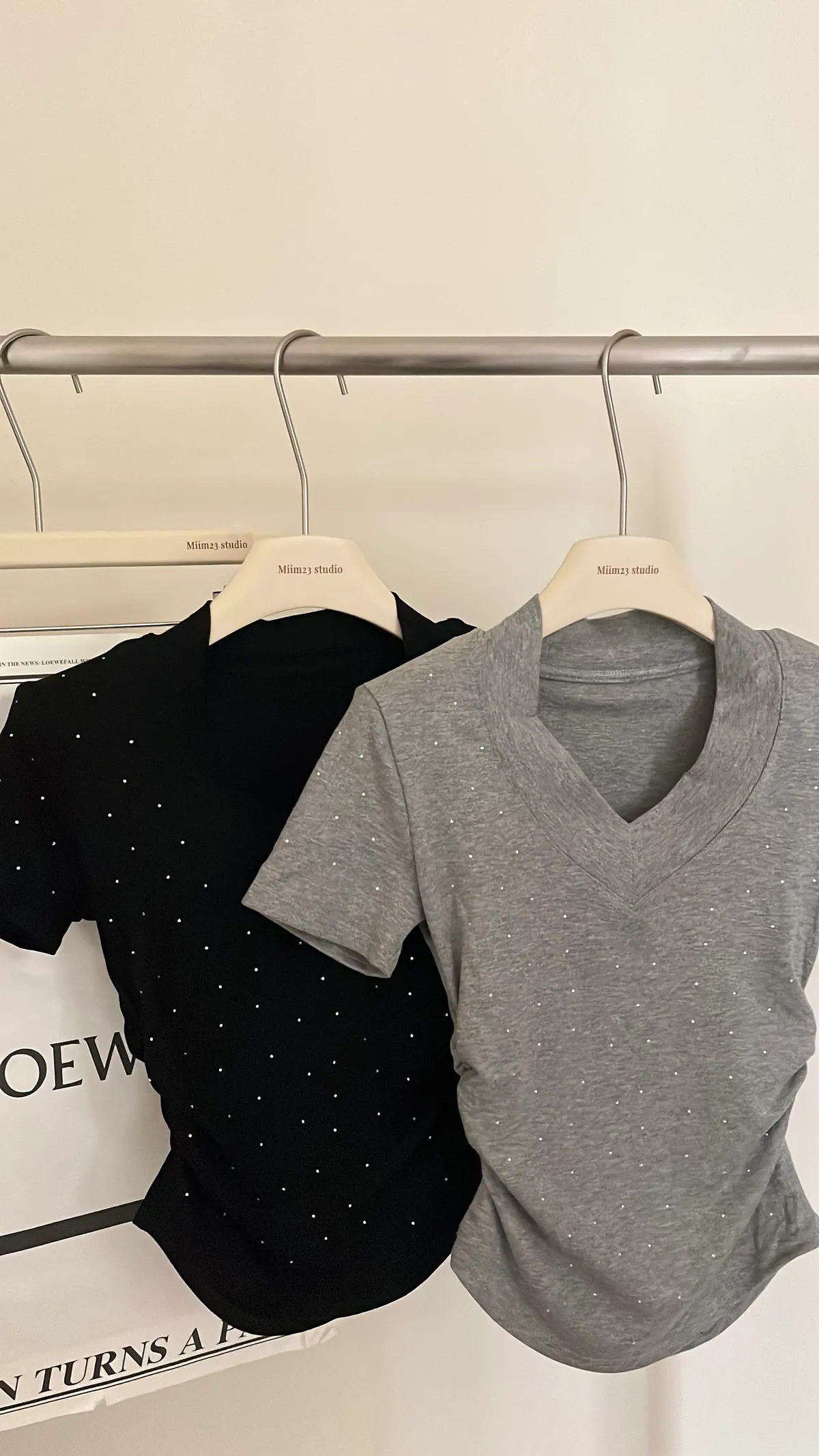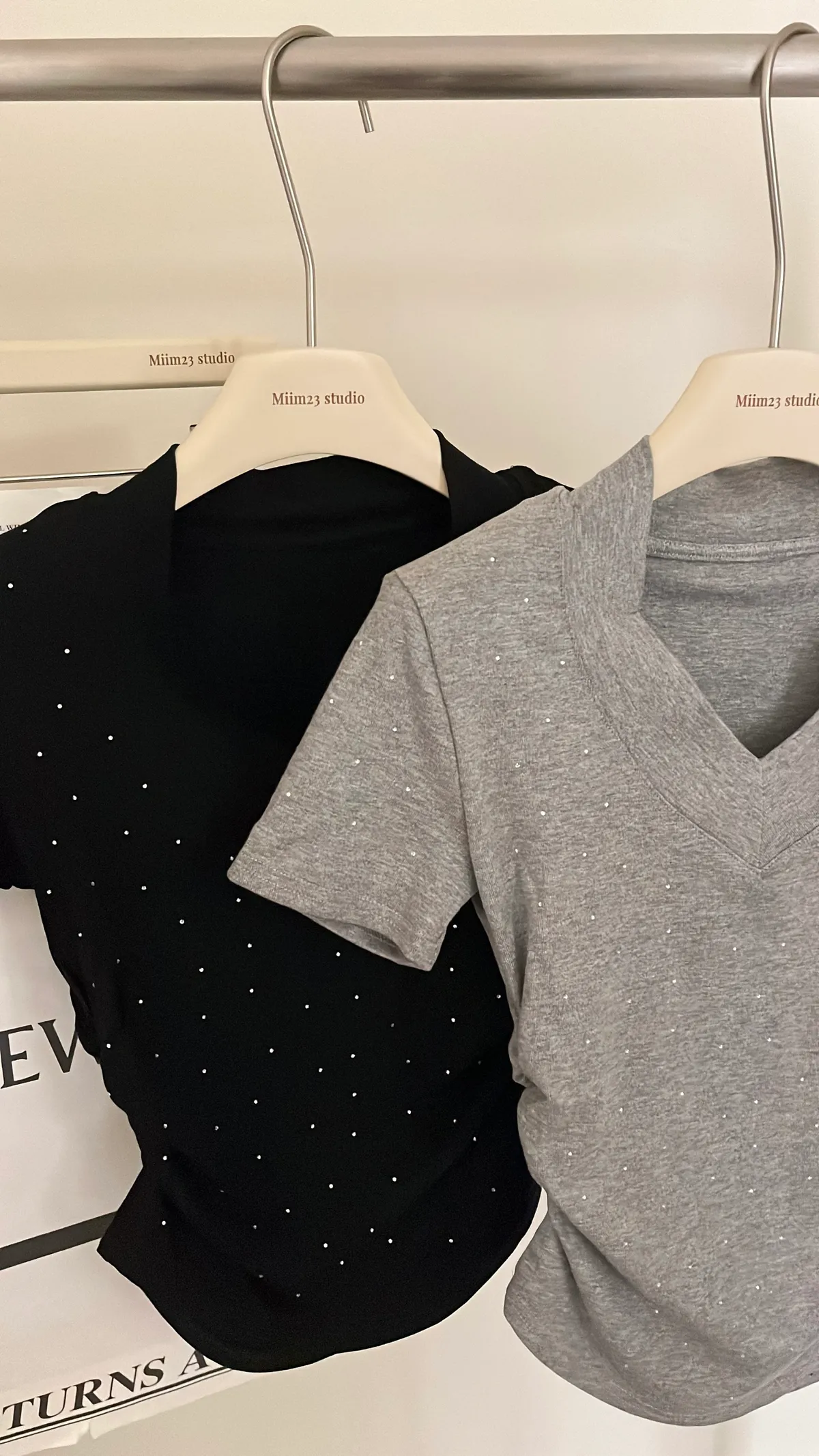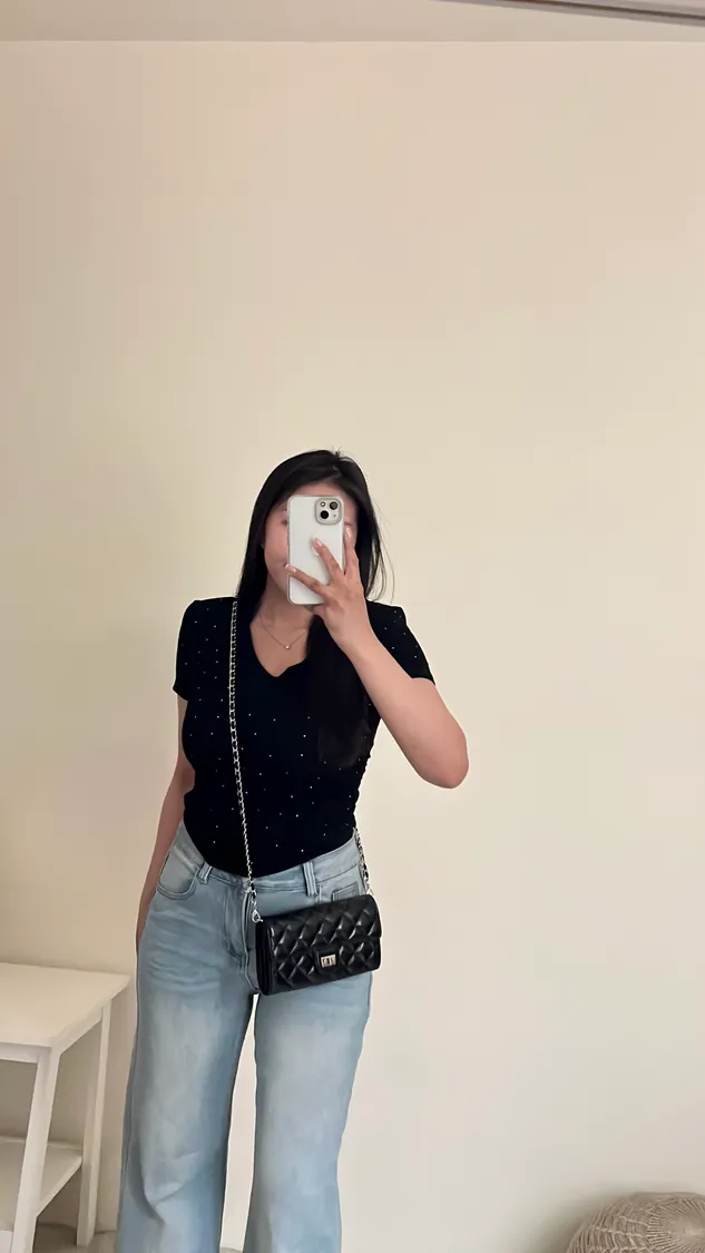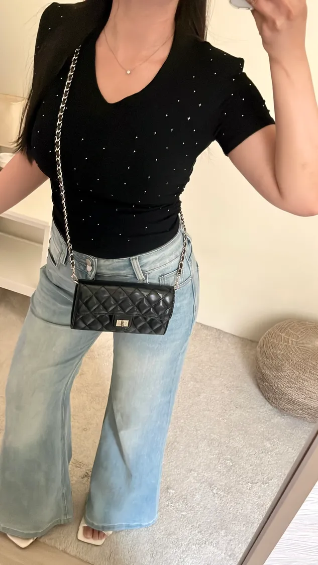 閃閃系列|閃鑽V領墊肩顯瘦縮腰上衣✨