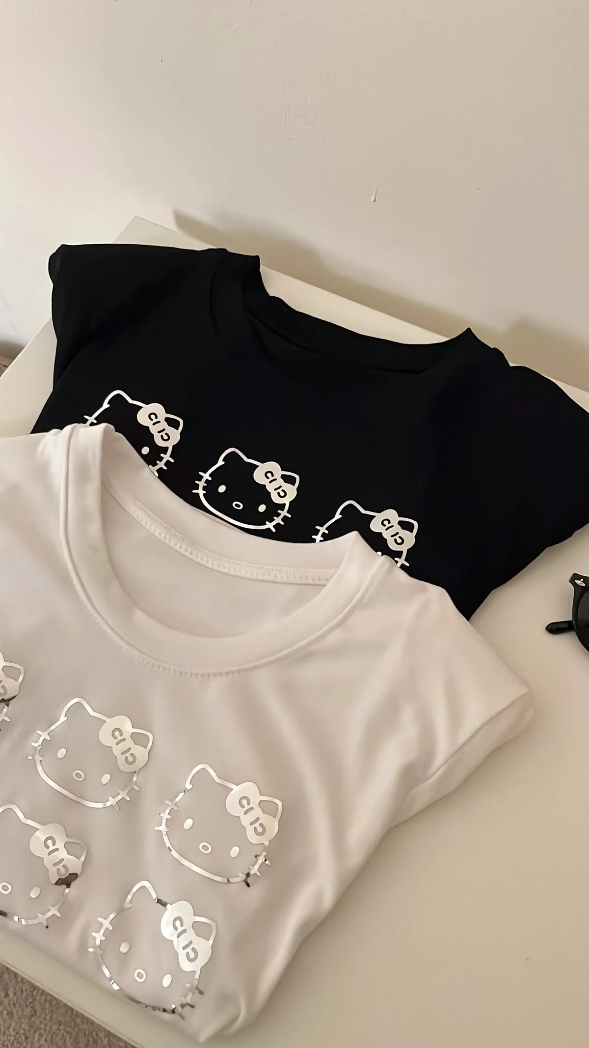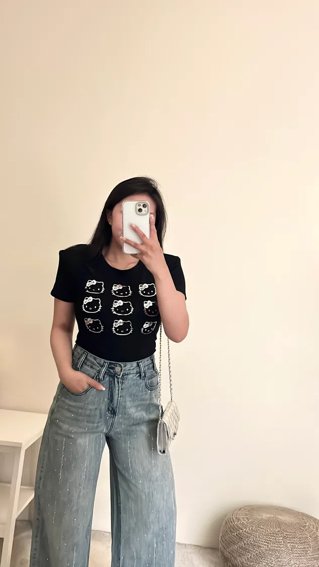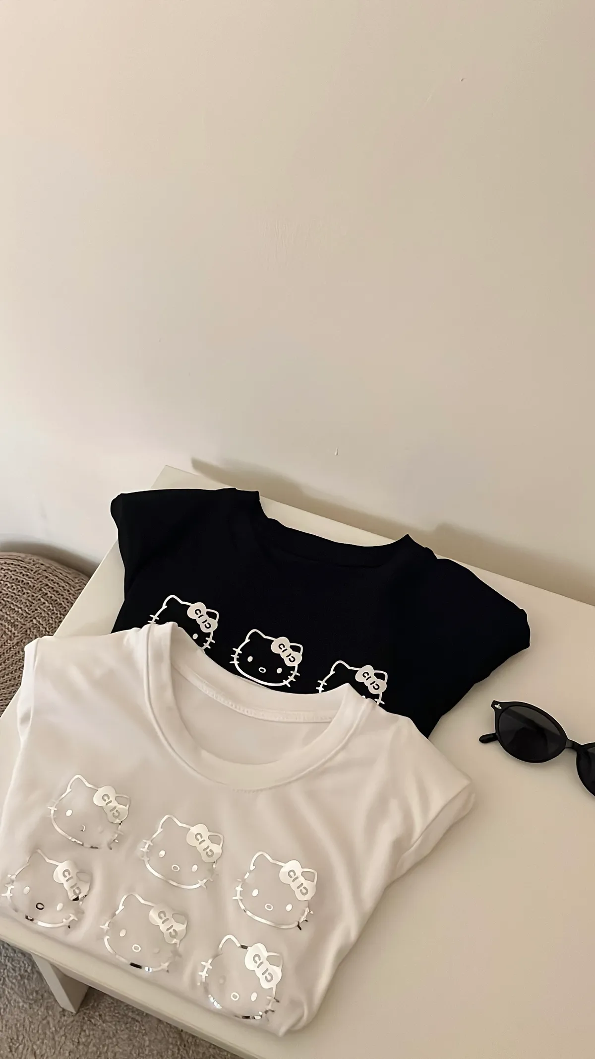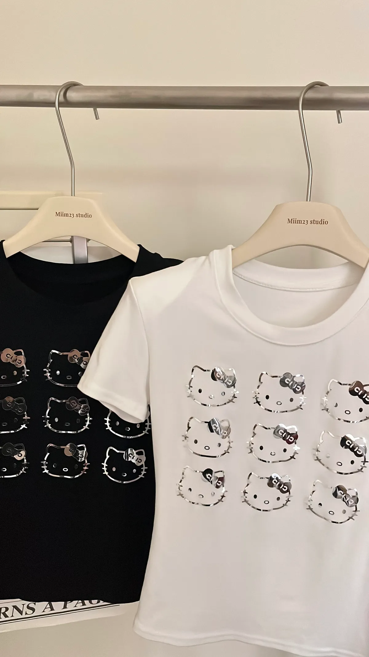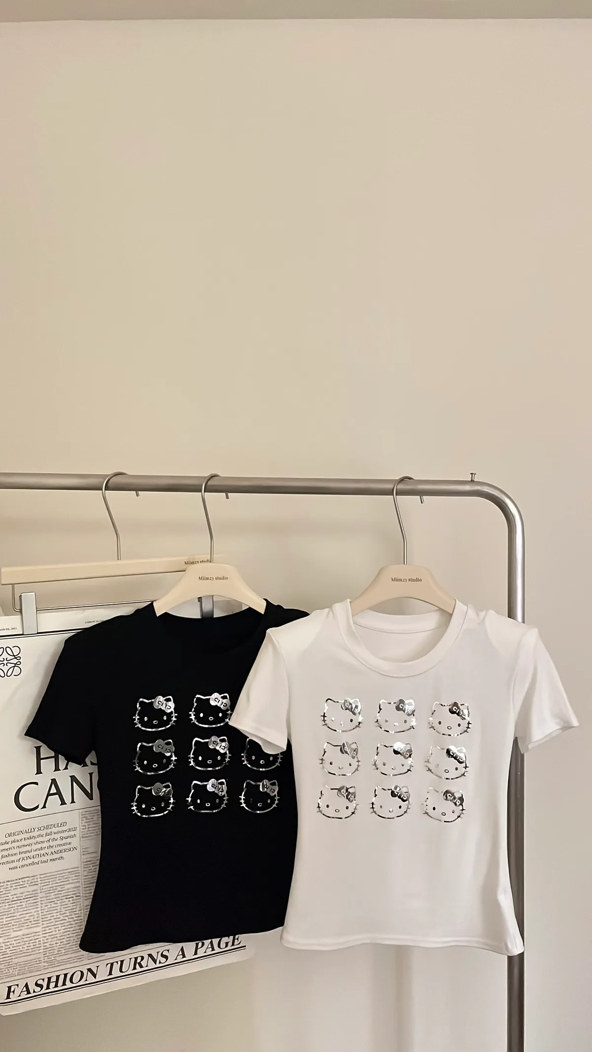 時髦Kitty單品|鏡面設計彈力墊肩上衣✨