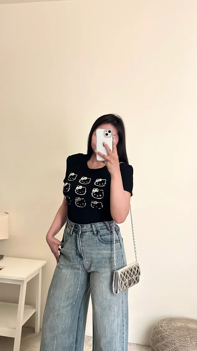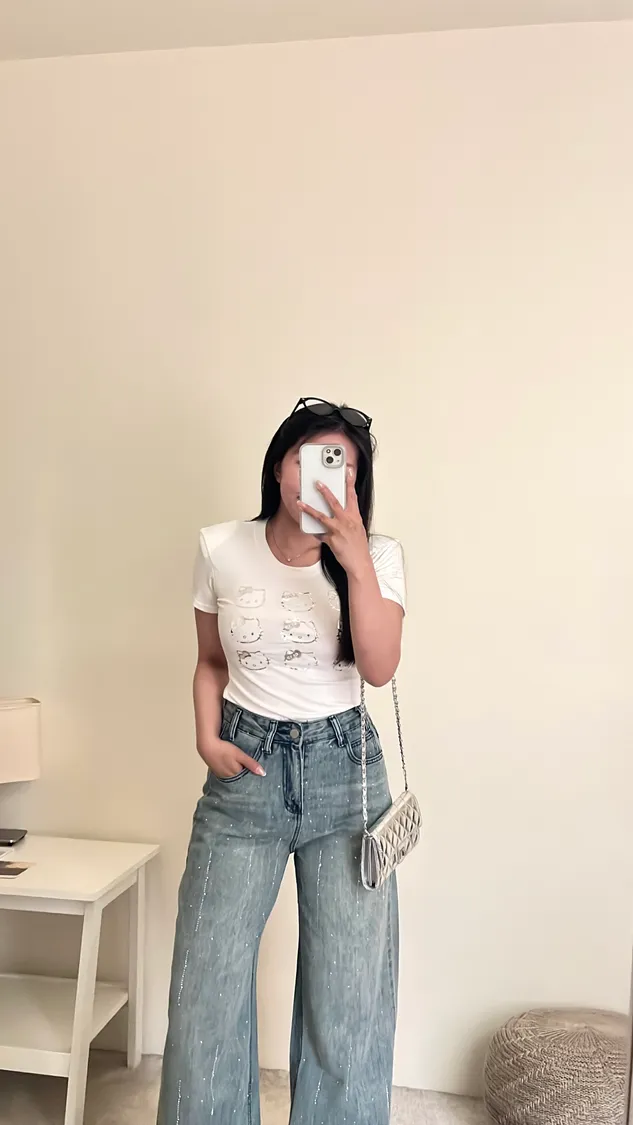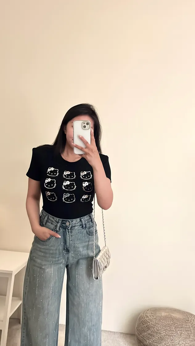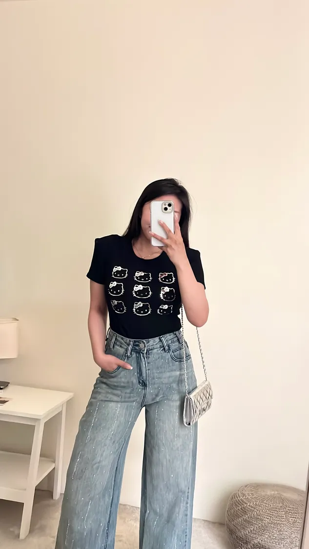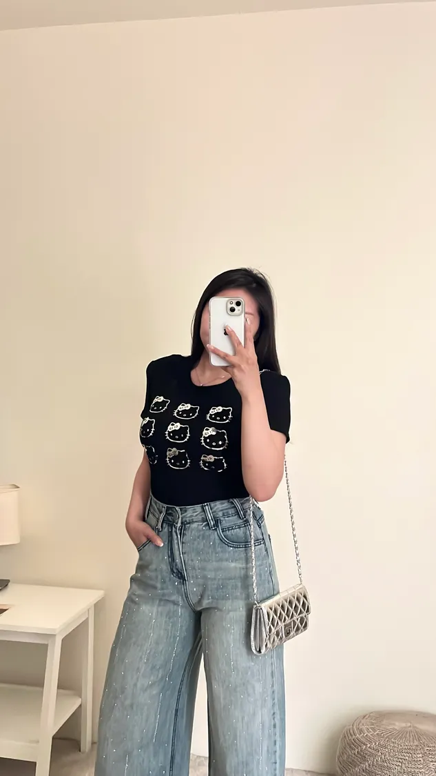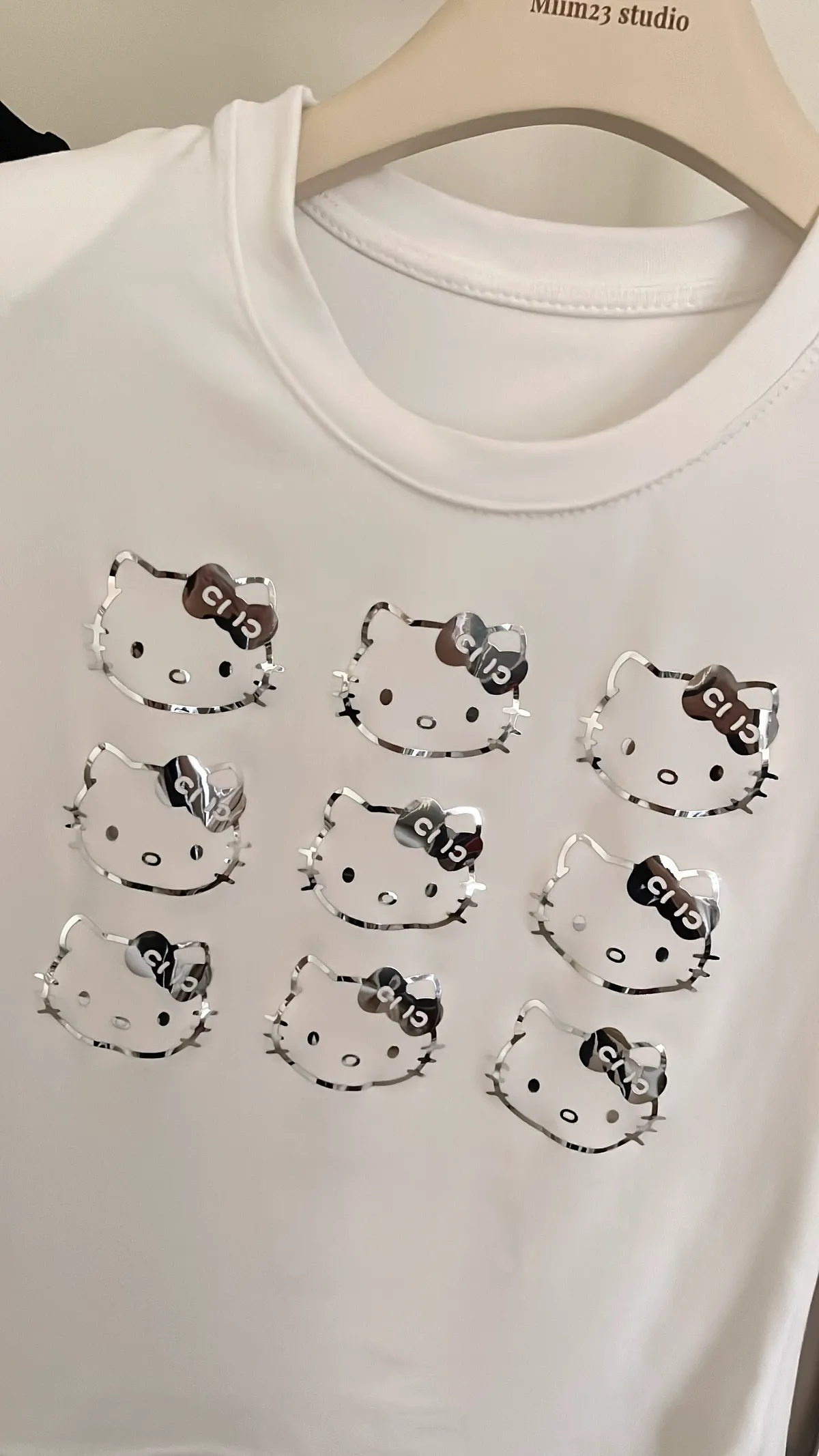 時髦Kitty單品|鏡面設計彈力墊肩上衣✨