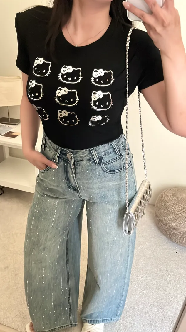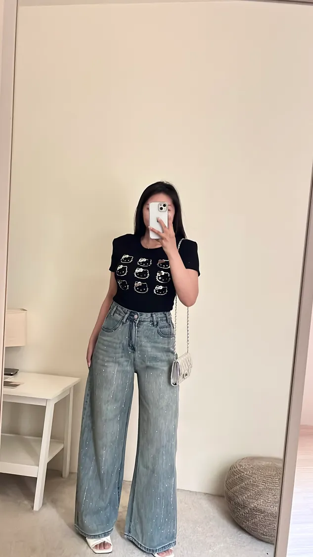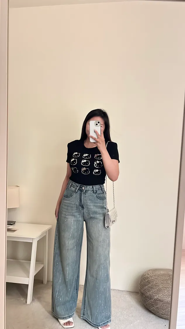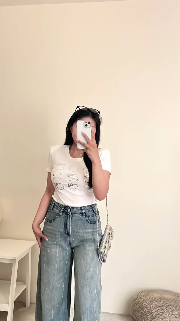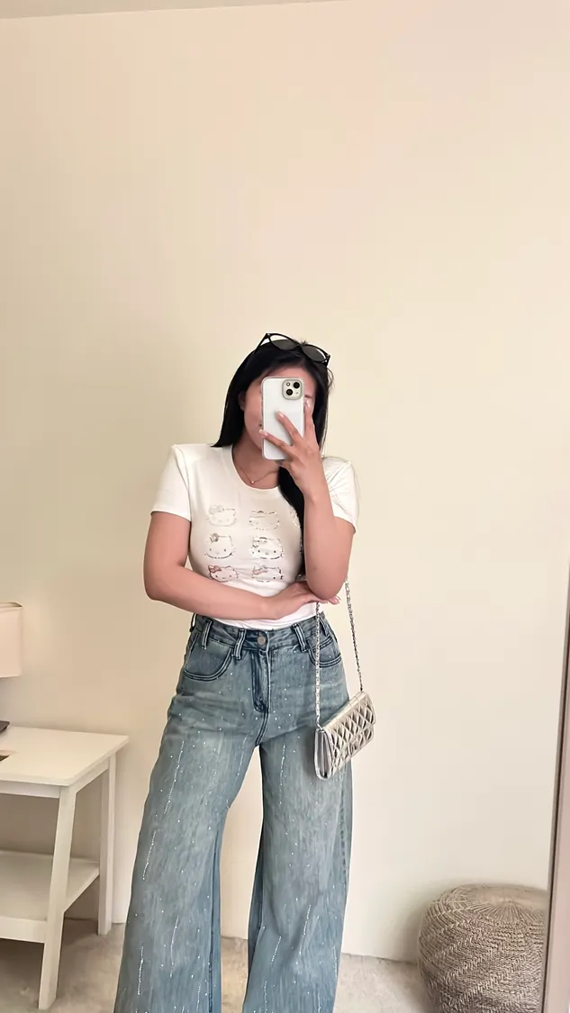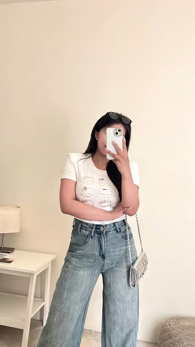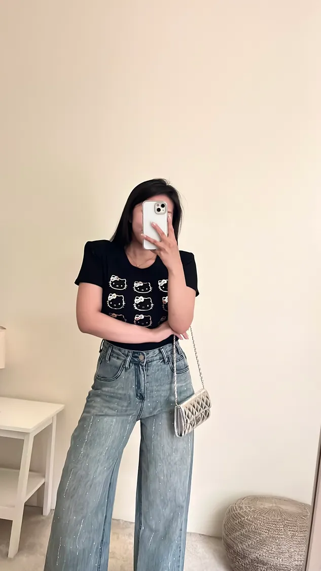 時髦Kitty單品|鏡面設計彈力墊肩上衣✨