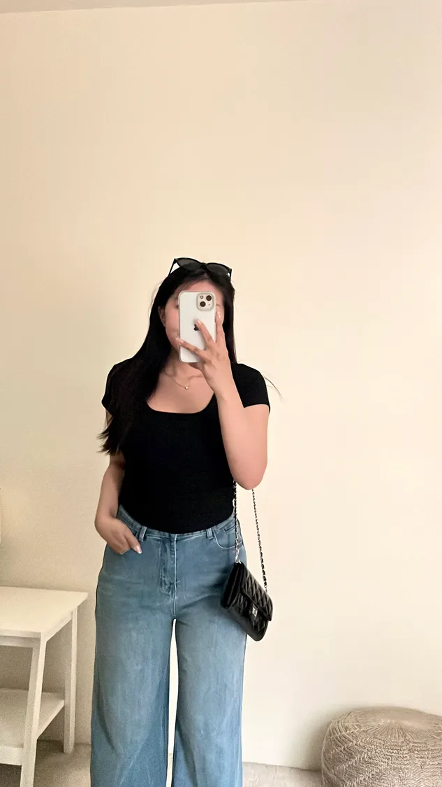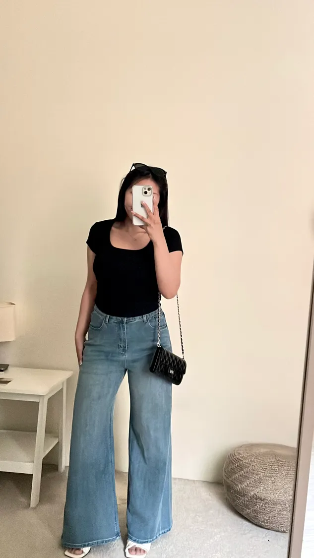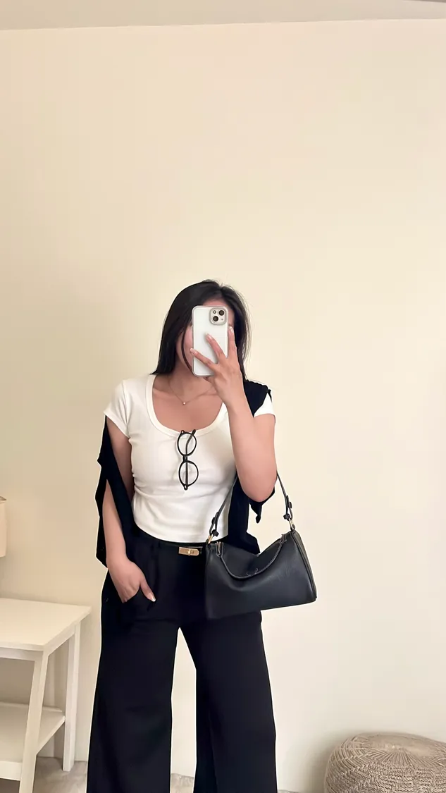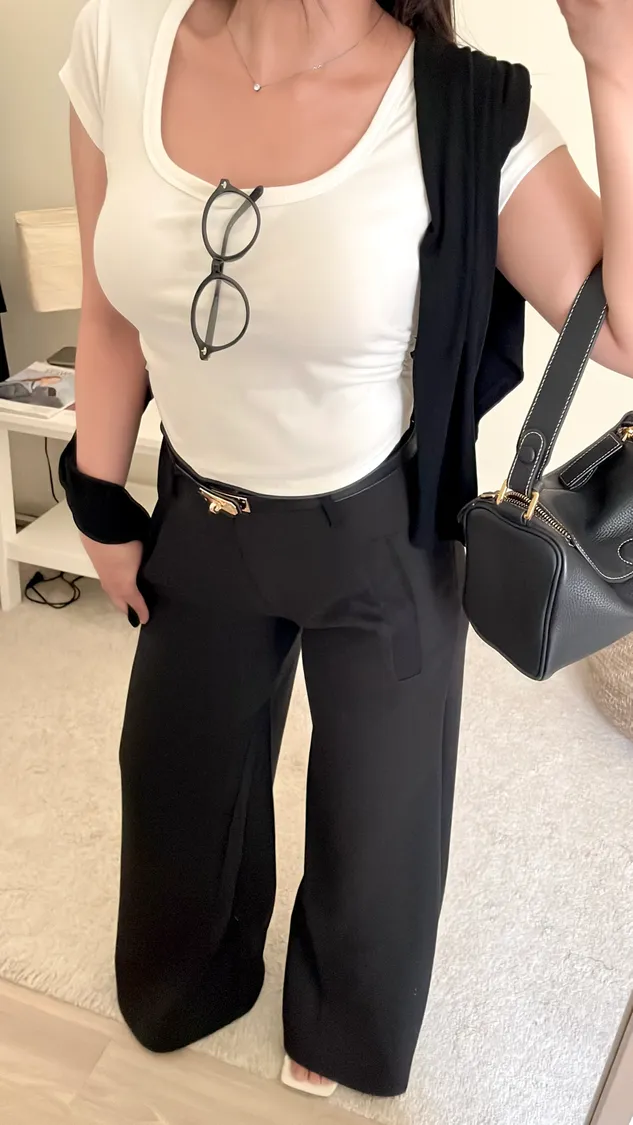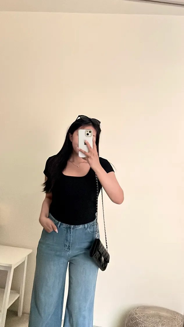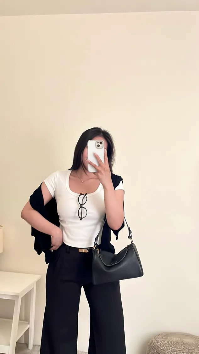 下身簡單穿,搭配高腰褲不露肚臍🦦