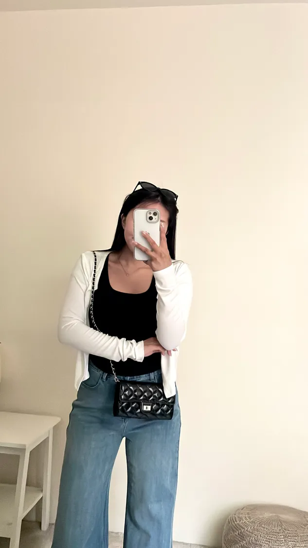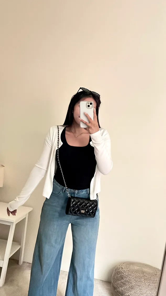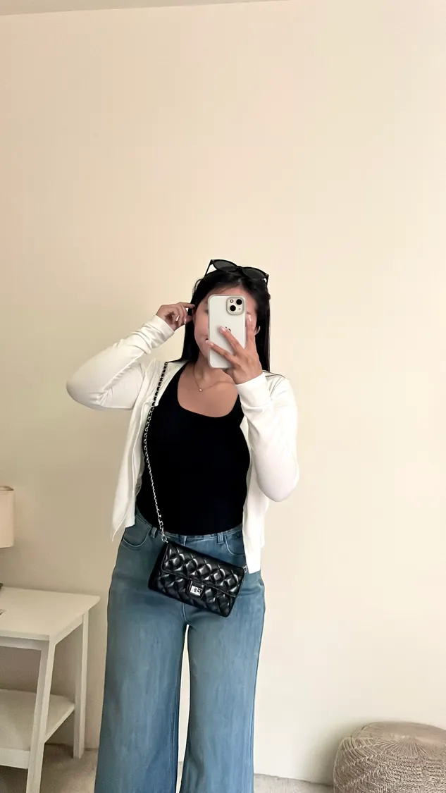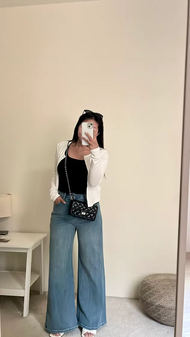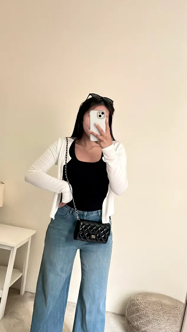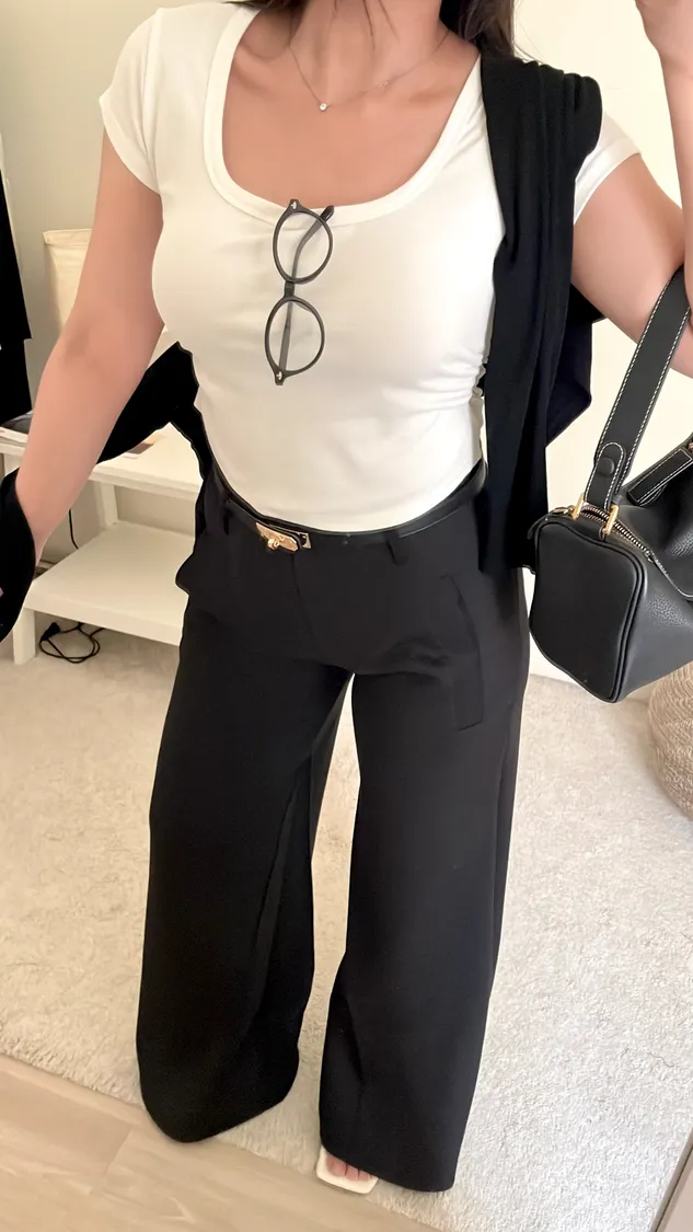 下身簡單穿,搭配高腰褲不露肚臍🦦