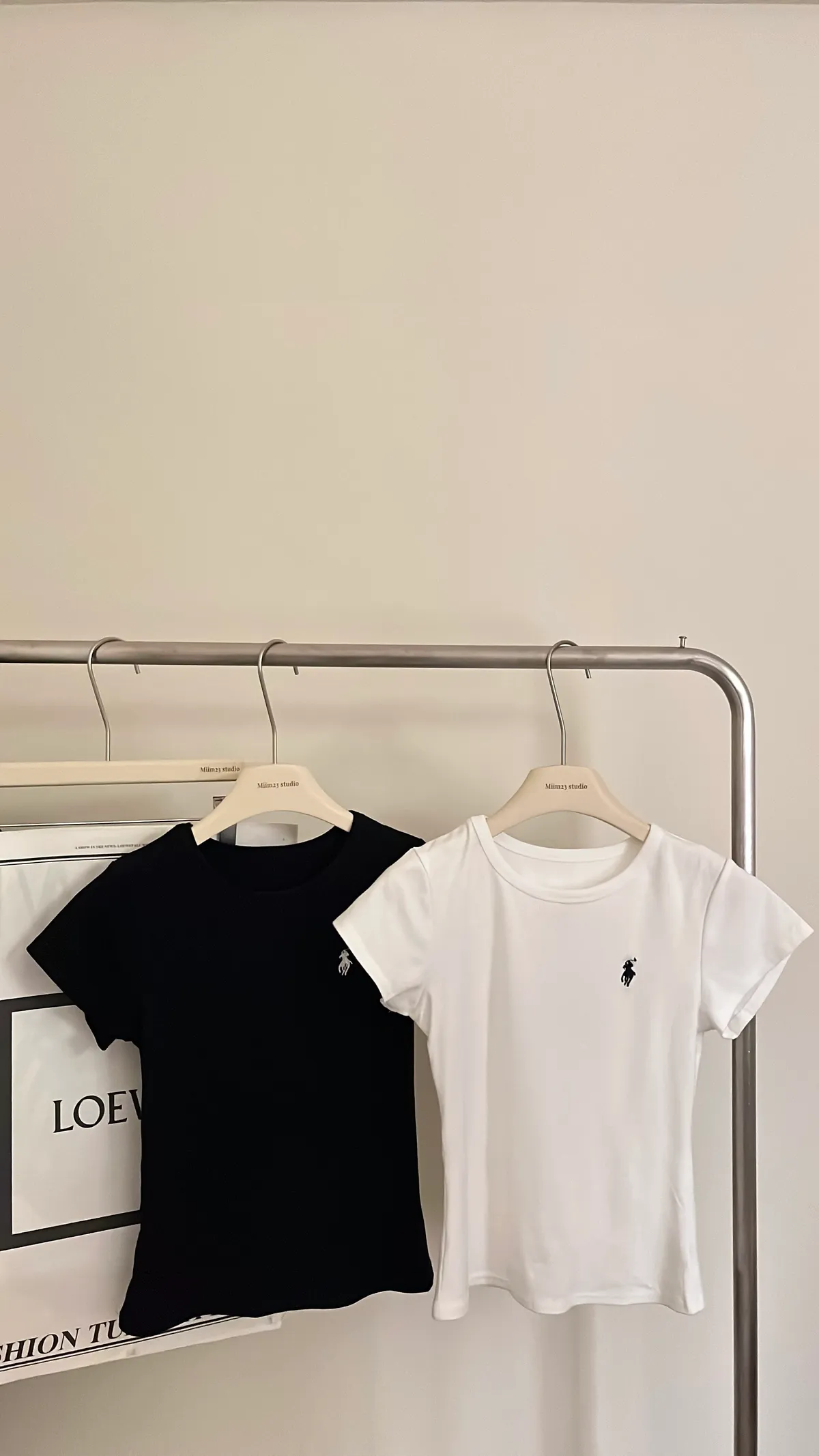 極簡高級感|小刺繡修身彈力棉TEE 🐎