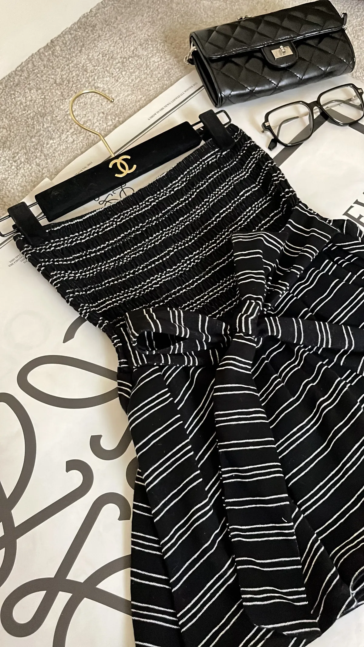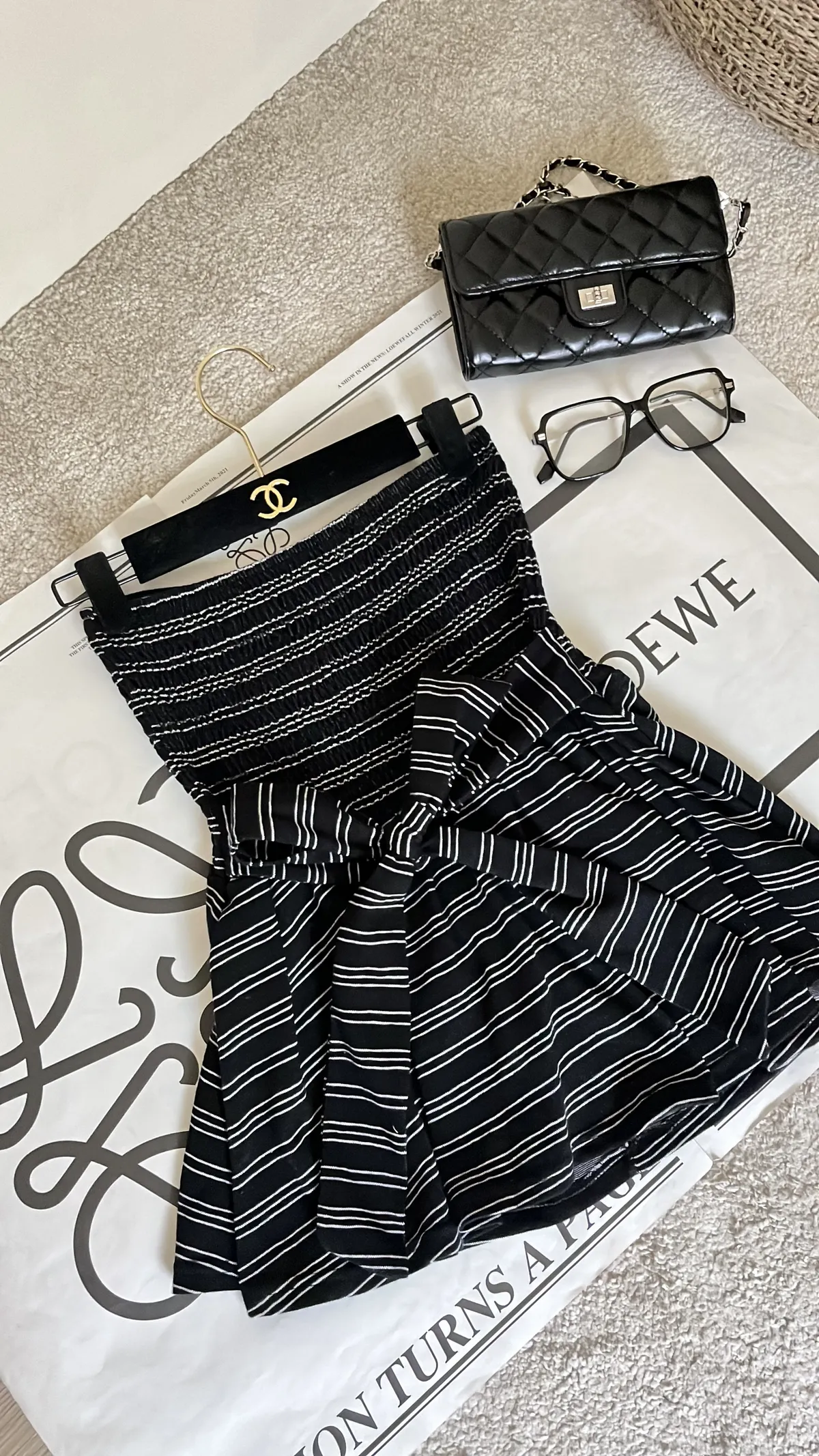 經典條紋加上平口剪裁,展現鎖骨小心機 😘🏻