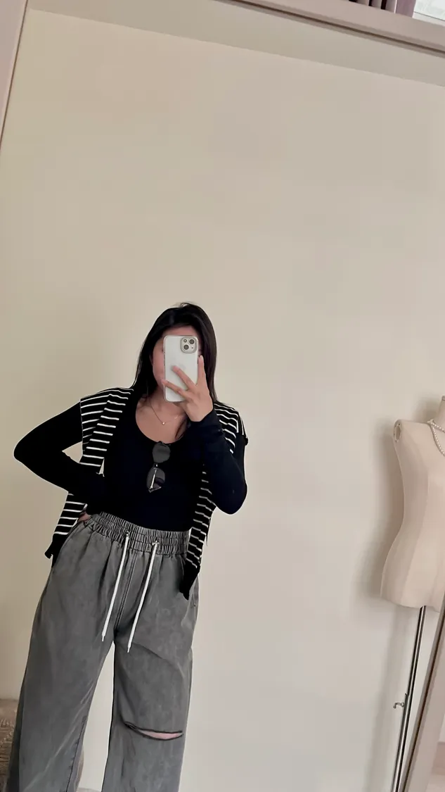 直接單穿的寶寶加上披肩簡單提升整體造型!