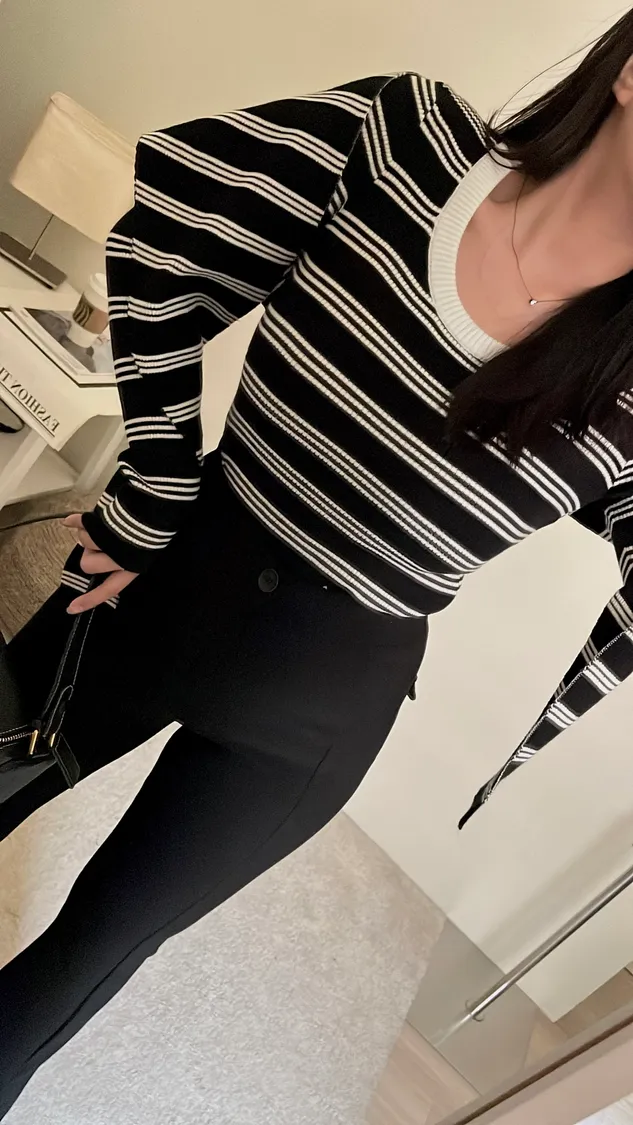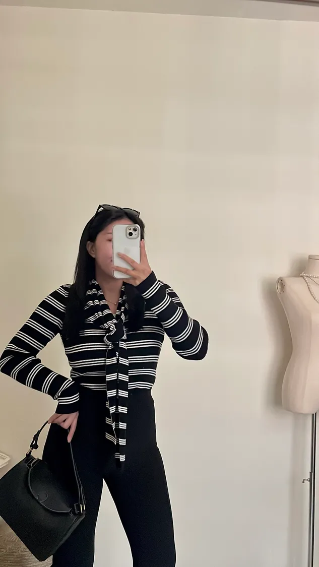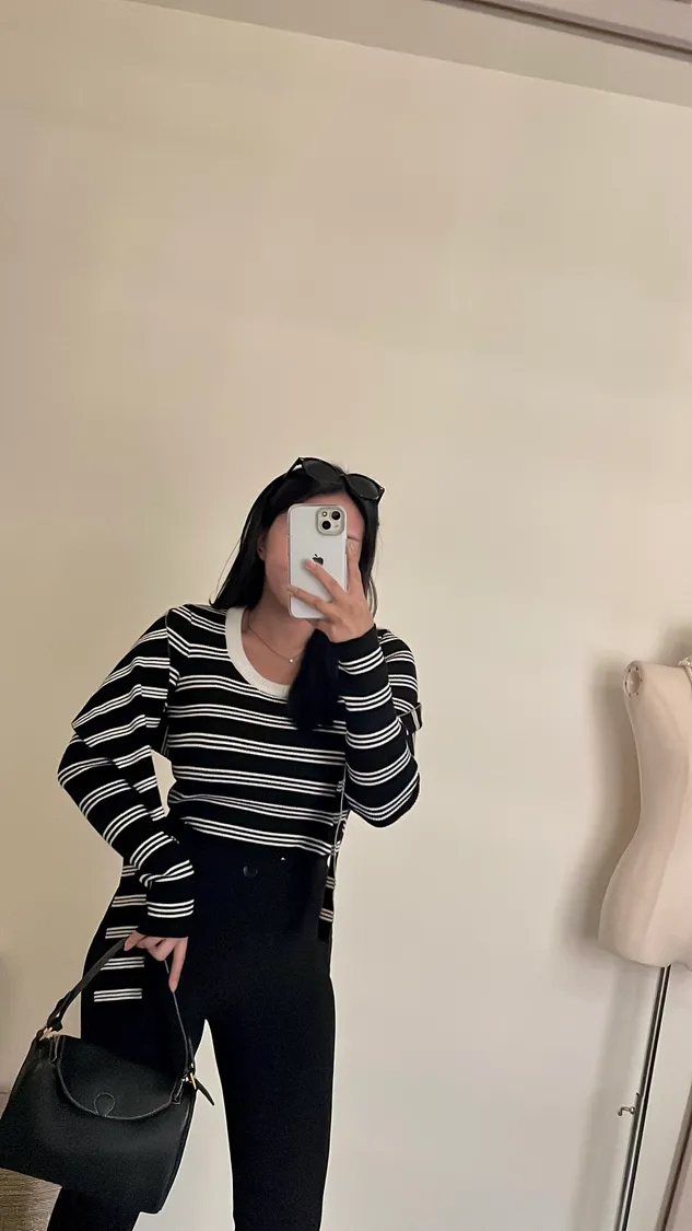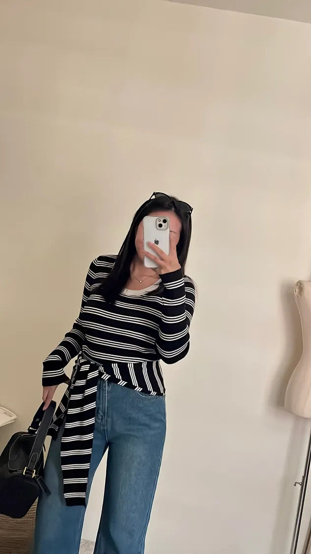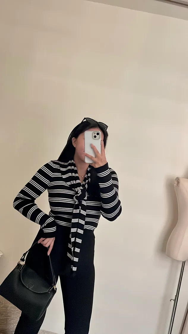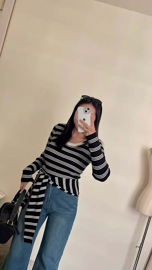 超級彈力!!歐膩穿搭針織撞色條紋+不規則披肩二件組SET🖤
